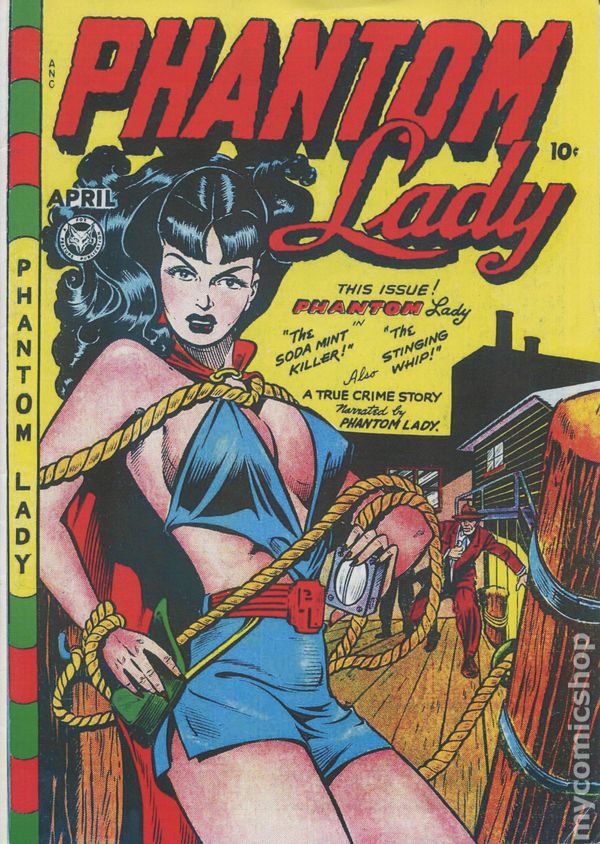 Facsimile Reprint of Phantom Lady (1947 Fox) #19. Cover by Matt Baker. Faithfully reproduced with all scans reworked to bring them back as close to the original. "Wine, Women, and Sudden Death" starring Phantom Lady, art by Matt Baker. Case of the Murderous Model starring Phantom Lady, script by Gregory Page, art by Matt Baker. Peter Treadway, Cleveland's Brutal Killer. The Crime Goddess text story. 36 pgs. Cover price $0.10.