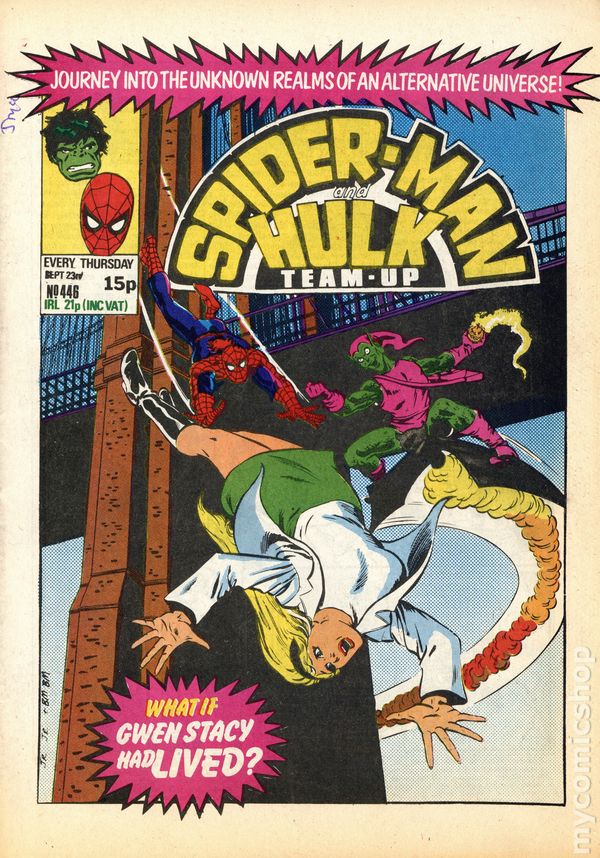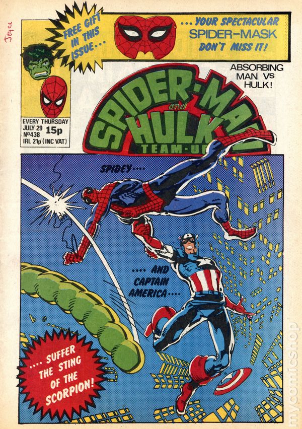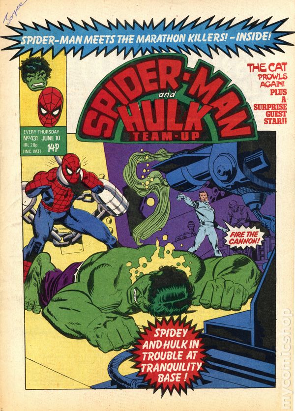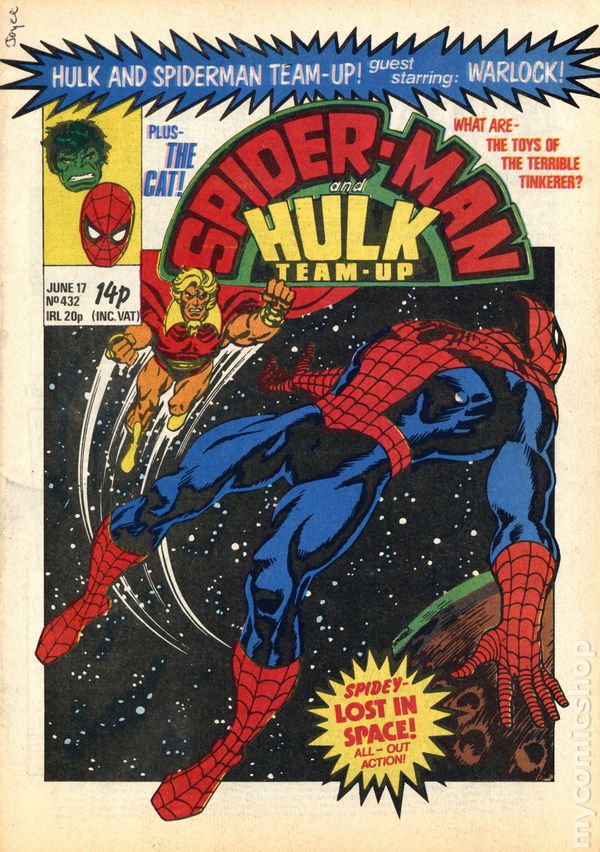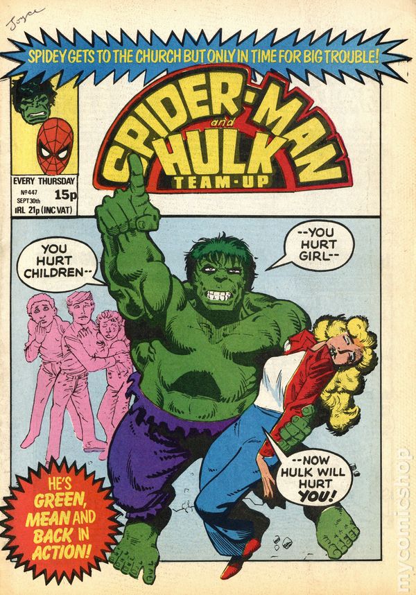 December 31, 1980. Spider-Man faces Belladonna. Back-up stories star the Hulk; She-Hulk vs. Man-Thing; and Daredevil. Michael Golden cover. 8-1/8 in. x 11-in.; black and white; 32 newsprint pages. Spider-man and Hulk Weekly becomes Super Spider-Man TV Comic after issue #449.