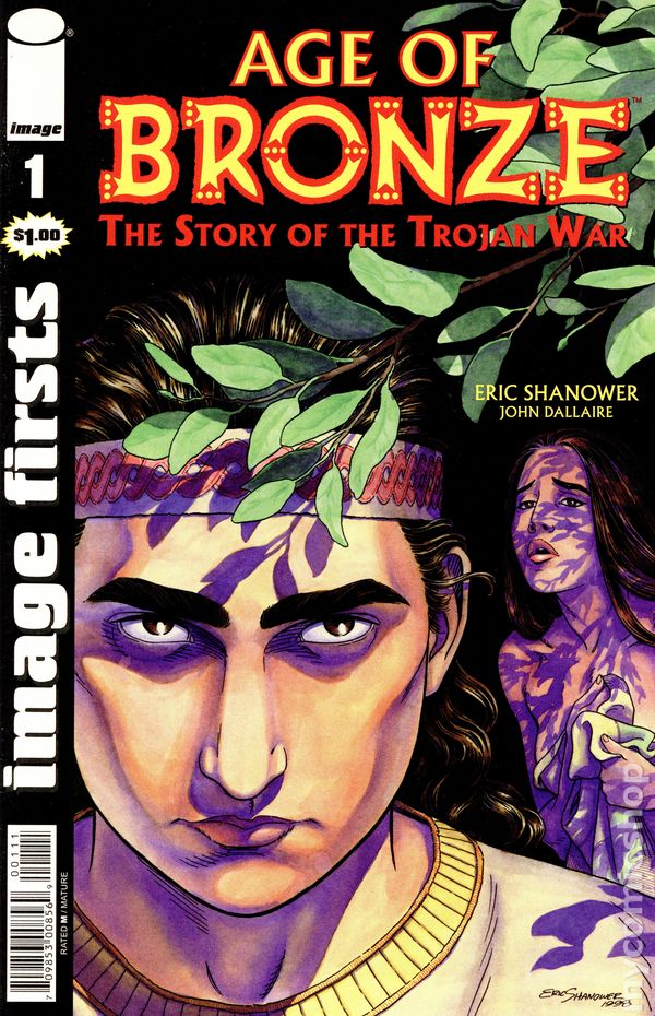 April 2018 Printing. $1 reprint of Age of Bronze (1998) #1. Story, Art and Cover by Eric Shanower. The Trojan War has been the greatest of Greek myths for more than 2500 years, and now ERIC SHANOWER presents his unique version of the story, gathered from extensive sources and drawn with historical fidelity. In this volume, Helen's triumphant entry into Troy is marred by Kassandra's wild prophecies of doom. Meanwhile, a massive army approaches from across the sea, but a disastrous battle forces the High King Agamemnon to make a fateful decision. Will he command the death of his daughter to satisfy the gods? Or will he give up his dream of conquering Troy? 28 pages, B&W. Cover price $1.00.