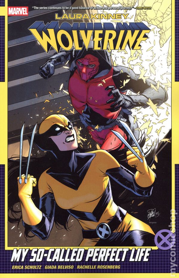 Volume 2 - 1st printing. "My So-Called Perfect Life!" Collects Laura Kinney: Wolverine (2024 Marvel) #6-10. Written by Erica Schultz. Art by Giada Belviso. Cover by Elena Casagrande. Back Cover by Giada Belviso. Laura Kinney - once known as X-23, now inheritor of the mantle of Wolverine - takes the fight to those who stand as enemies to mutantkind! Eisner Award nominated writer Erica Shultz (Moon Knight, Amazing Spider-Man, Daredevil) brings Laura Kinney from Ultimate Assasin to Ultimate Mutant Protector! The Wolverine family tree can get pretty complex, but what could be more perfect than Laura Kinney living happily with her doting father (by the name of Logan) and her beloved sister (the incomparable Gabby)? In fact, wouldnt leaving behind her life of death and assassination mean living the dream? Or is it the perfect trap? Softcover, 112 pages, full color. Rated T+ Cover price $15.99.
