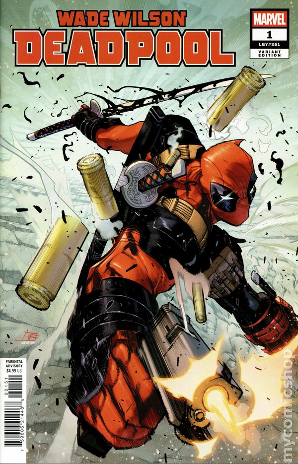 Limited 1 for 50 Retailer Incentive Variant Cover.(W) Benjamin Percy (A) Geoff Shaw (CA) David Nakayama DANGEROUS. UNHINGED. DEADLY. Deadpool is a man on the brink, and that means the jobs are deadlier, the stakes are higher, and the humor is darker than ever before. But Wade Wilson isnt laughing. A dark memory haunts Deadpool, as a mysterious client leads him down a troubling path. This way lies redemption? No, something far worse. Wade can never be forgiven for what hes done… the new ongoing series begins! 32 pages, full color, rated parental advisory. Cover price $4.99.
