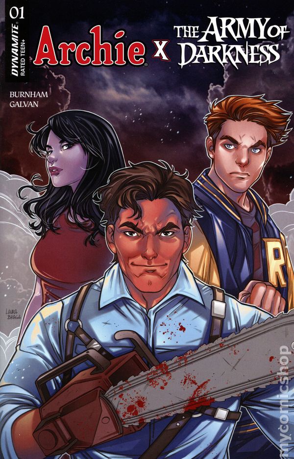 Limited 1 for 30 Retailer Incentive Variant Cover. (W) Erik Burnham (A) Bill Galvan (CA) Laura Braga ITS A TEENAGE NIGHTMARE! Theres a certain man — names Ash, you may have heard of him — who is doomed to battle against the forces of evil, over and over again, whether he likes it or not. No matter where he goes, the cycle of violence always repeats itself — until the day that he arrives in the picturesque town of Riverdale. This supernaturally wholesome community seems to break the curse that has plagued Ash ever since he first encountered its otherworldly evil all those years ago. Or rather, the curse was broken — until an over-curious teenager named Archie finds a copy of the Necronomicon Ex Mortis and reads a portion of it aloud, summoning the horrifying Deadites once again! Now Ash and the good townsfolk of Riverdale must hold back the undead hordes long enough for Archie to undo what hes unwittingly done. Otherwise, an Army of Darkness will roll over Riverdale and destroy everything and everyone in its path — and thats just not going to happen on Ashley J. Williamss watch! Fresh-faced author ERIC BURNHAM (Teenage Mutant Ninja Turtles, Ghost Busters) joins wide-eyed artist BILL GALVAN (Archie, Guardians of the Galaxy) for a long nights journey into mayhem with Archie X Army of Darkness #1! Featuring clean-cut covers from GALVAN, ROBERT HACK, LAURA BRAGA, CRAIG CERMAK, and STUART SAYGER, this premier issue also boasts a special PREMIUM MYSTERY BLIND BAG that contains three limited editions of the issue selected randomly from a range of variant covers exclusive to this offering — including two original covers by GALVAN and FRANCESCO FRANCAVILLA, as well as multiple line art variants and colored blanks. Please Note: The number of Blind Bags is limited, and allocations may occur. 32 pages, full color, rated T+. Cover price $4.99.