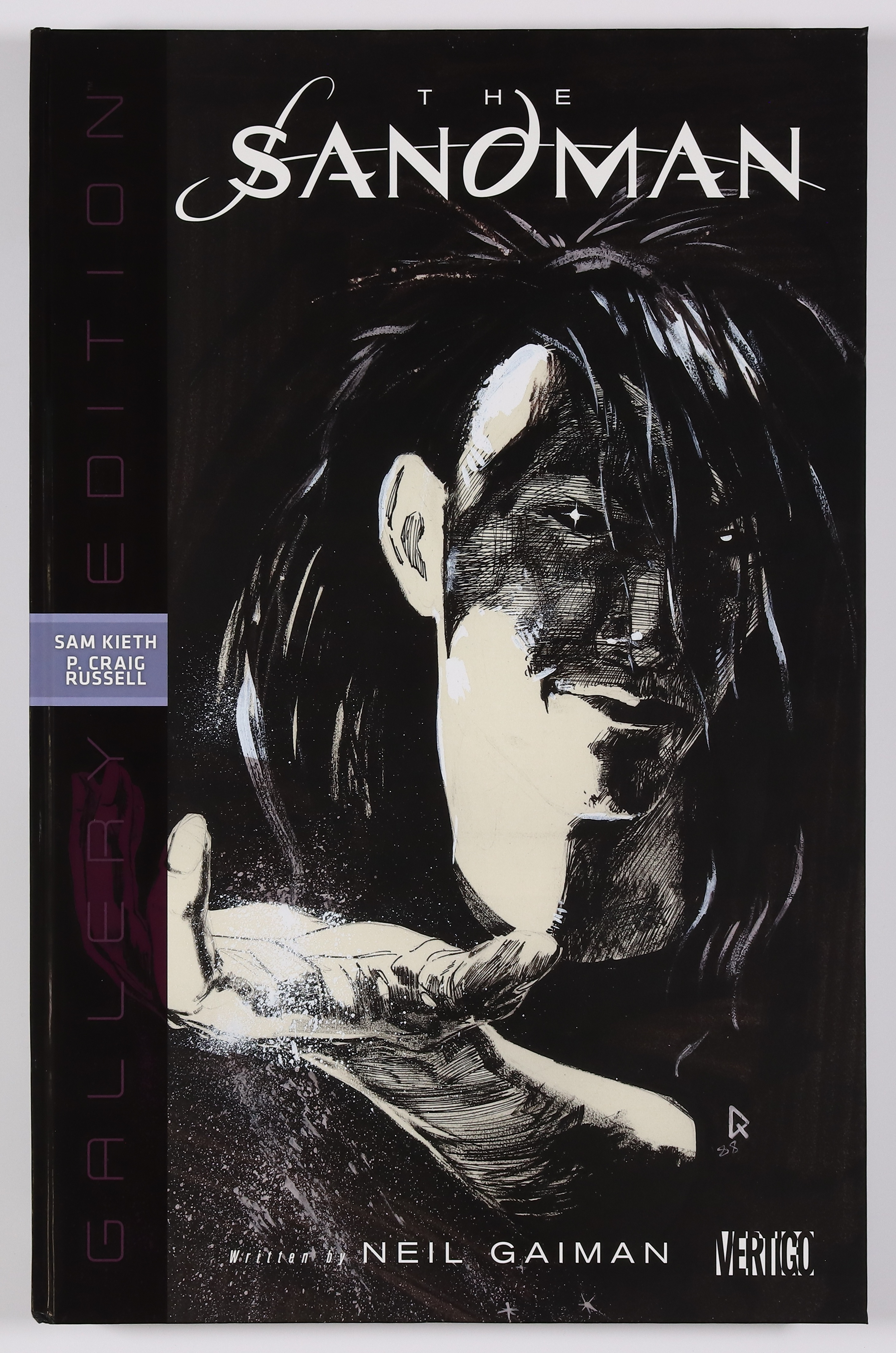 1st printing. THE SANDMAN GALLERY EDITION: FEATURING THE ART OF SAM KIETH and P. CRAIG RUSSELL. The original art that brought to comics life the writings of Neil Gaiman are collected together in THE SANDMAN Gallery Edition. In addition to artwork by Sam Kieth from THE SANDMAN #1 and P. Craig Russell's THE SANDMAN: THE DREAM HUNTERS includes pages from THE SANDMAN #2-75, the six-page story "Death: A Winter's Tale" of the premiere talents in comics. This 272 page, 13" x 20" deluxe, Smythesewn hardcover volume is printed at 200 line-screen on heavy paper-stock replicating the original art experience. Never before has artwork by so many different top talents in comics been seen in this format. Hardcover, 13-in. x 20-in., 272 pages, B&W.