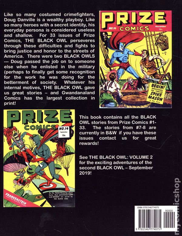 Volume 251 - 1st Printing. "The Black Owl Volume 1!" Collects Prize Comics (1940) #1-33. These budget friendly reprints of classic western sci-fi, horror, and adventure comics feature some of the best in public domain comic book reprints. Softcover, 8 1/2-in. x 11-in., 346 pages, PC/B&W.