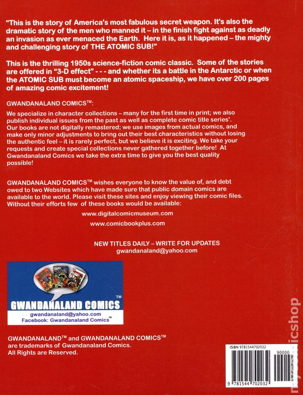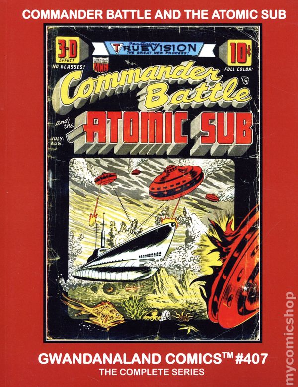 Volume 407 - 1st Printing. "Commander Battle and the Atomic Sub!" Collects Commander Battle and the Atomic Sub (1954) #1-7. These budget friendly reprints of classic western sci-fi, horror, and adventure comics feature some of the best in public domain comic book reprints! Softcover, 8 1/2-in. x 11-in., 192 pages, full color.