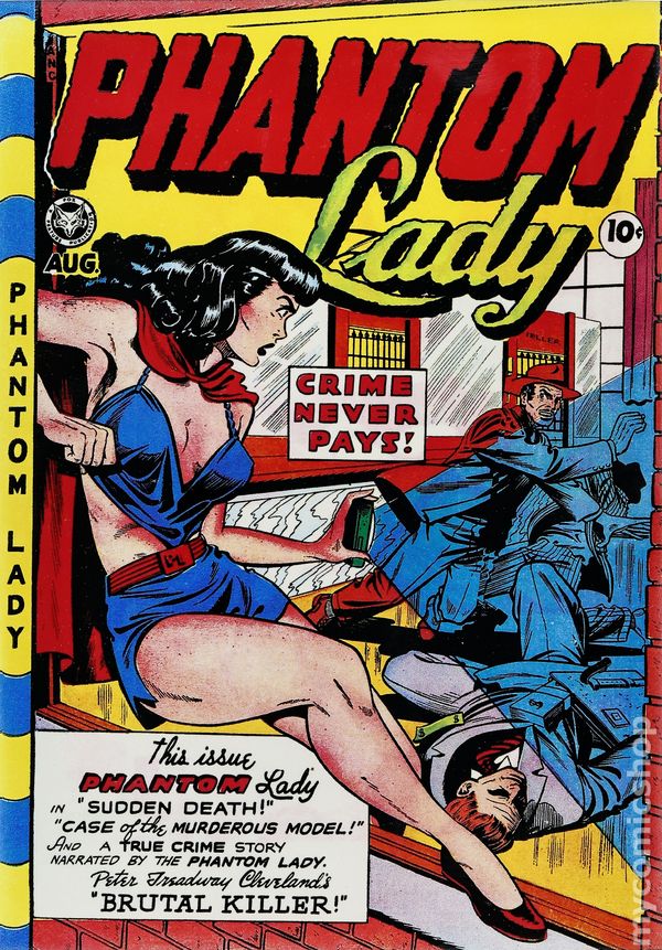 Facsimile Reprint of Phantom Lady (1947 Fox) #19. Cover by Matt Baker. Faithfully reproduced with all scans reworked to bring them back as close to the original. "Wine, Women, and Sudden Death" starring Phantom Lady, art by Matt Baker. Case of the Murderous Model starring Phantom Lady, script by Gregory Page, art by Matt Baker. Peter Treadway, Cleveland's Brutal Killer. The Crime Goddess text story. 36 pgs. Cover price $0.10.