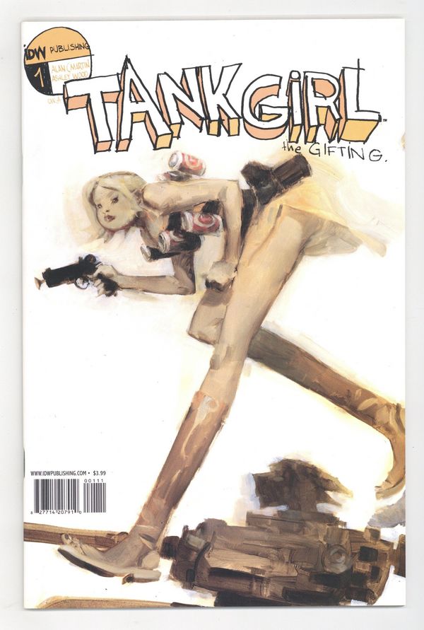 Published May 2007 by IDW Publishing.$17.50Alan C. Martin (w); Ashley Wood (a & c) In these days of ultra-serious megacrossovers, comics gets exactly what it's been needing-a jolt of adrenaline courtesy of the too-long-absent Tank Girl! Co-creator Alan C. Martin is back to offer redemption to anyone who sat through the Tank Girl movie, and what's more, this time the book's art chores will be handled by artist/painter and fellow Aussie, Ashley Wood! Issue 1 features six separate Tank Girl stories by Martin and Wood, including appearances by Jet Girl, the Funsters and more. Cover price $3.99.