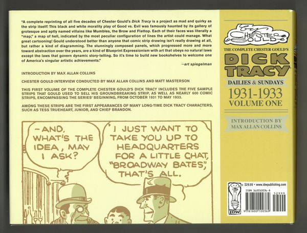 Volume 1 - 1st printing. "1931-1933!" Presenting a deluxe hardcover collection of Chester Gould's timeless comic strip, Dick Tracy. The first volume of this multi-year project will include the five sample strips that Gould used to sell his groundbreaking strip, as well as nearly 500 comic strips, encompassing the series' beginning, from October 1931-May 1933. Among these strips are the first appearance of many long-time Dick Tracy characters, such as Tess Trueheart, Junior, and Chief Brandon. This special first volume features an overview and introduction from Consulting Editor and longtime Tracy writer Max Allan Collins, as well as an interview between Collins and creator Chester Gould. Each volume will feature book design from award-winning designer/artist Ashley Wood. Hardcover, 10-in. x 7 1/2-in., PC/PB&W. Cover price $29.99.
