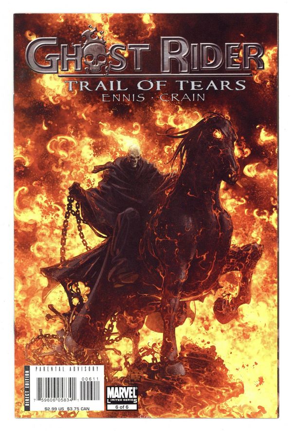 Written by GARTH ENNIS Pencils and Cover by CLAYTON CRAIN It's High noon Hell! Five inhuman riders rode out of the red fog and unleashed hell on the little town and its people -- five riders who came from the bowels of hell with blood in their eyes and their sights trained on the Spirit of Vengeance itself. 32 PGS./Parental Advisory Cover price $2.99.