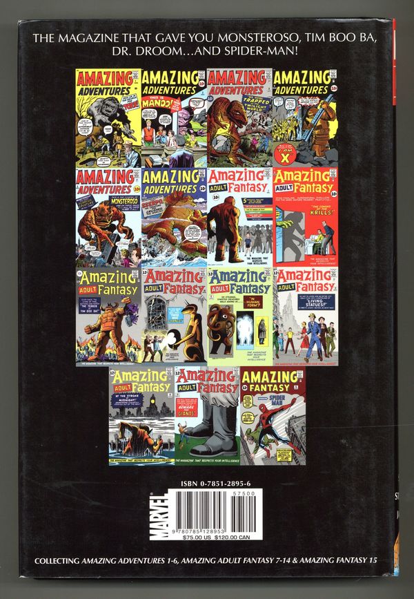 1st Edition - Volume 1 - 1st printing. Collects Amazing Adventures (1961 1st Series) #1-6, Amazing Adult Fantasy (1961-1962) #7-14 and Amazing Fantasy (1962) #15.