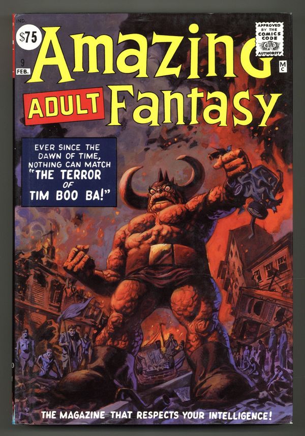 Across six issues of truly amazing adventures, Lee, Kirby, and Ditko dreamed up a cadre of ten-story tall menaces from Torr to Manoo to the one and only Monsteroso to trash unwitting Earthlings on a month-in and month-out basis. Backed up by weird tales of wax museums, witchcraft, Martians, and the occult master who set the trenchcoat trend in comics, Dr. Druid, it seemed these titanic tales could never be topped. And then Stan Lee and Steve Ditko did just that by launching 'The Magazine That Respects Your Intelligence!' An all-new approach for the young comics sophisticate, Amazing Adult Fantasy presented Twilight Zone-tinged tales of otherworldly aliens, time travel, ghosts, atomic nightmares, and maybe even the secret of the universe itself. With story after lushly-illustrated story, Ditko set a new standard for comic book illustration, and Lee raised the bar ever higher with his scintillating scripts. And, oh, in the last issue they created some guy named 'Spider-Man.'