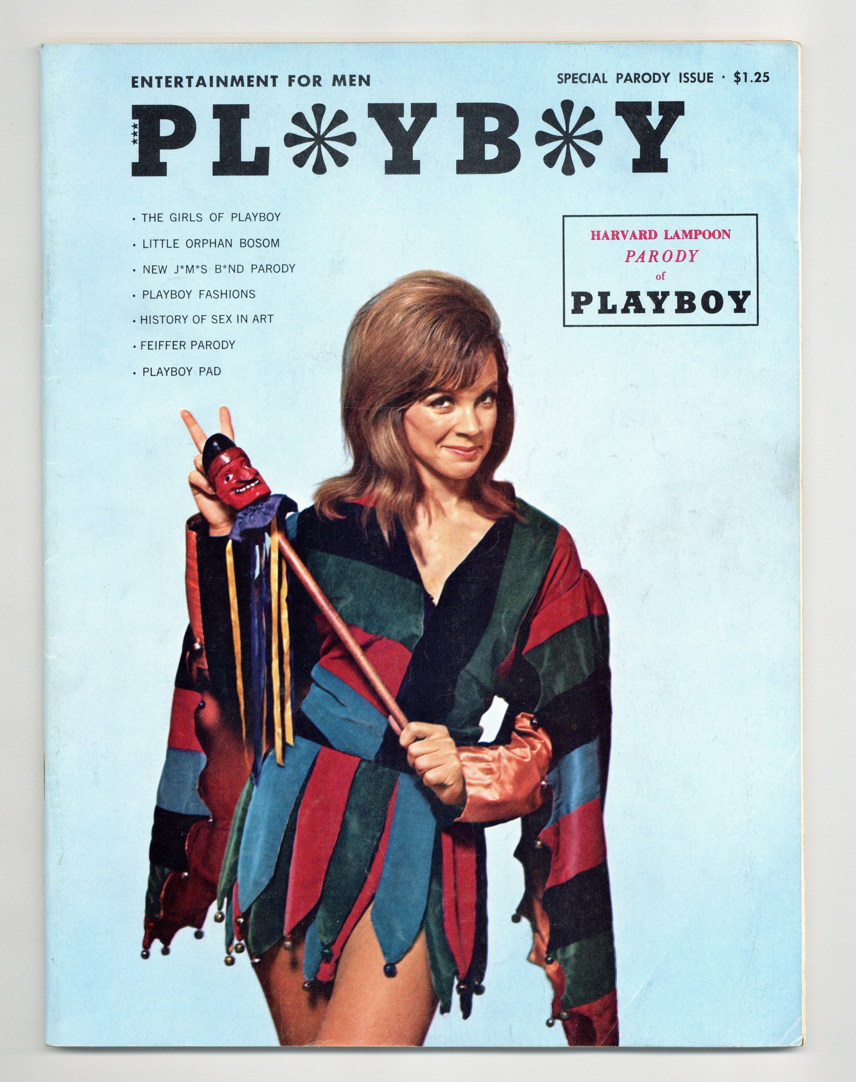 Harvard Lampoon parody of Playboy, complete with an Ian Fleming spoof, a sendup of Jules Feiffer and Little Orphan Annie, even some terrific Gahan Wilson imitation cartoons. Extremely well done and you have to look hard to see this isn't a real issue. 8 1/4-in. x 11-in., 102 pages, full color. Mature readers. Cover price $1.25.