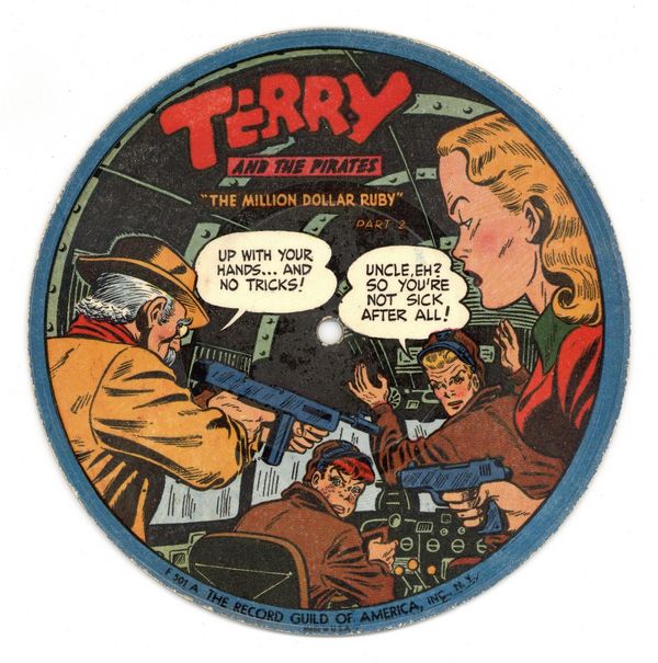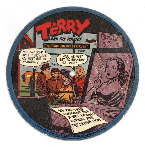 A children's record produced in 1948 by The Record Guild Of America. This cardboard record is double sided with a different picture on each side. Plays at 78 RPM