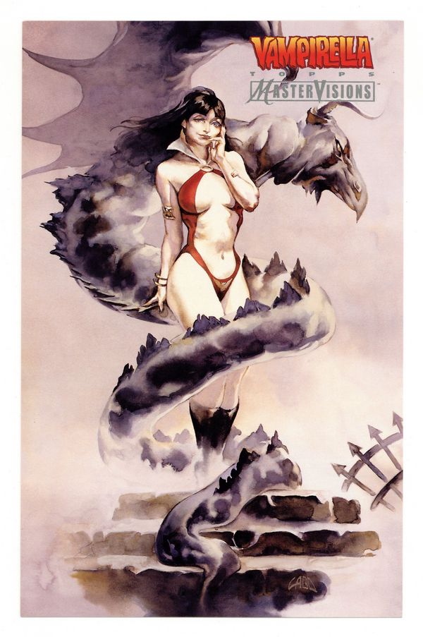 $12.00#24 in a set of 36 jumbo trading cards by Topps. Each card features a different artist (some artists repeat). Featured art by: Ray Lago. Back of card features an advertisement for the Vampirella Topps Master Visions Collector Cards series. Measures 6-1/2" x 10-1/4"