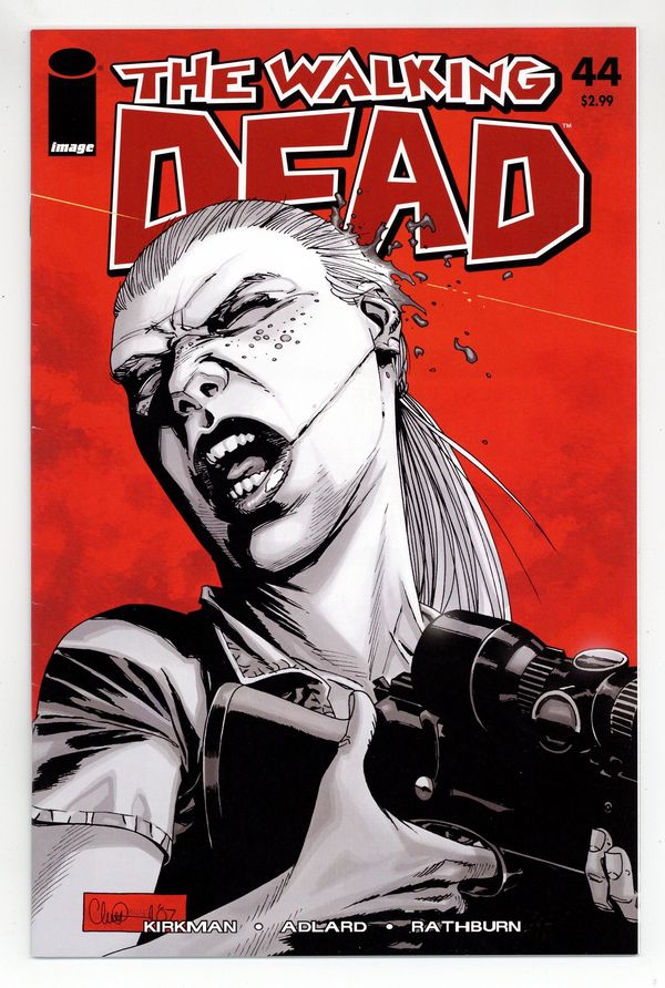 $15.00Written by Robert Kirkman. Art and Cover by Charlie Adlard and Cliff Rathburn. Everything is changing - starting now! It's all been leading up to this, folks! Nobody is safe. Nothing will ever be the same. The biggest, most explosive story-arc in the history of this series starts right here, in this issue. Characters in this issue: The Governor; Rick Grimes; Dale; Andrea; Lori Grimes; Glenn; Maggie; Herschel; Tyreese; Michonne; Axel; Alice. 32 pages, B&W (gray tones). RETAILER WARNING: MAY NOT BE SUITABLE FOR ALL AGES Cover price $2.99.