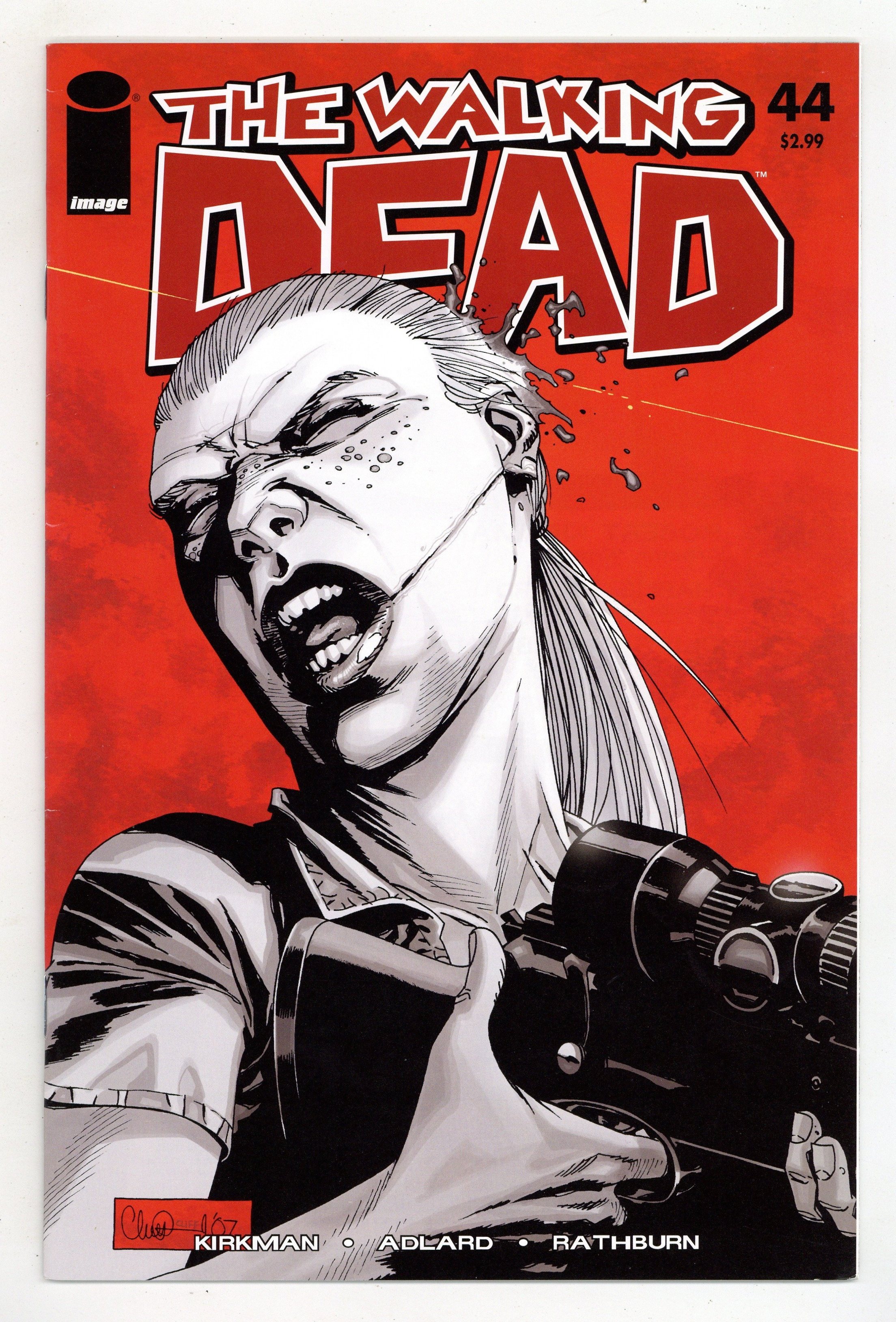 $16.25Written by Robert Kirkman. Art and Cover by Charlie Adlard and Cliff Rathburn. Everything is changing - starting now! It's all been leading up to this, folks! Nobody is safe. Nothing will ever be the same. The biggest, most explosive story-arc in the history of this series starts right here, in this issue. Characters in this issue: The Governor; Rick Grimes; Dale; Andrea; Lori Grimes; Glenn; Maggie; Herschel; Tyreese; Michonne; Axel; Alice. 32 pages, B&W (gray tones). RETAILER WARNING: MAY NOT BE SUITABLE FOR ALL AGES Cover price $2.99.