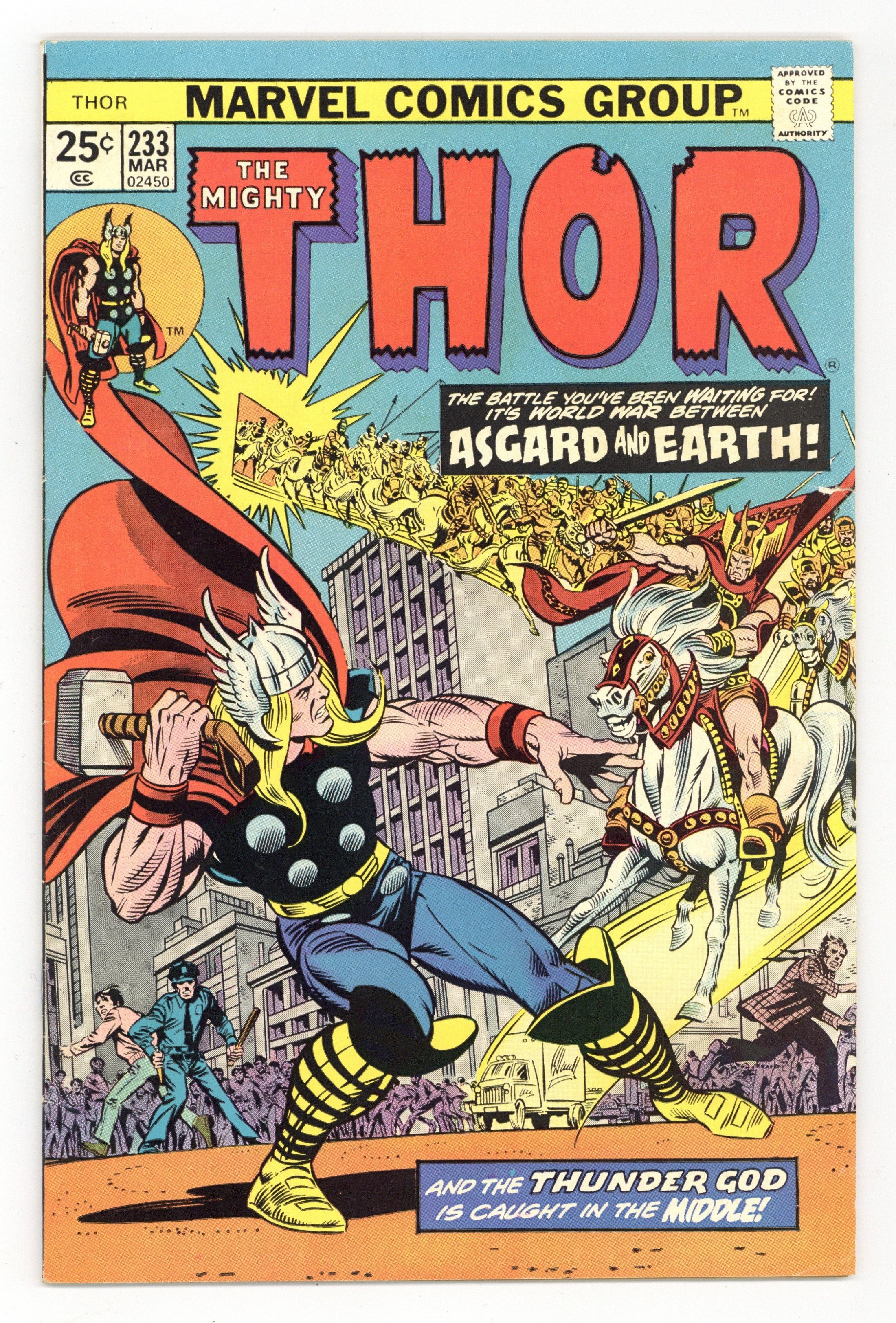 Mark Jewelers Advertisement Insert Variant. Loki returns in "Midgard Aflame!" Script by Gerry Conway, layouts by John Buscema, finished art by Chic Stone. Cameos by Spider-Man, the Hulk, Daredevil, the Silver Surfer, Hawkeye, the Vision, Iron Man, Doctor Strange, the Black Panther, Quicksilver, and Cyclops. Gil Kane/Joe Sinnott and Marie Severin cover. Cover price $0.25.