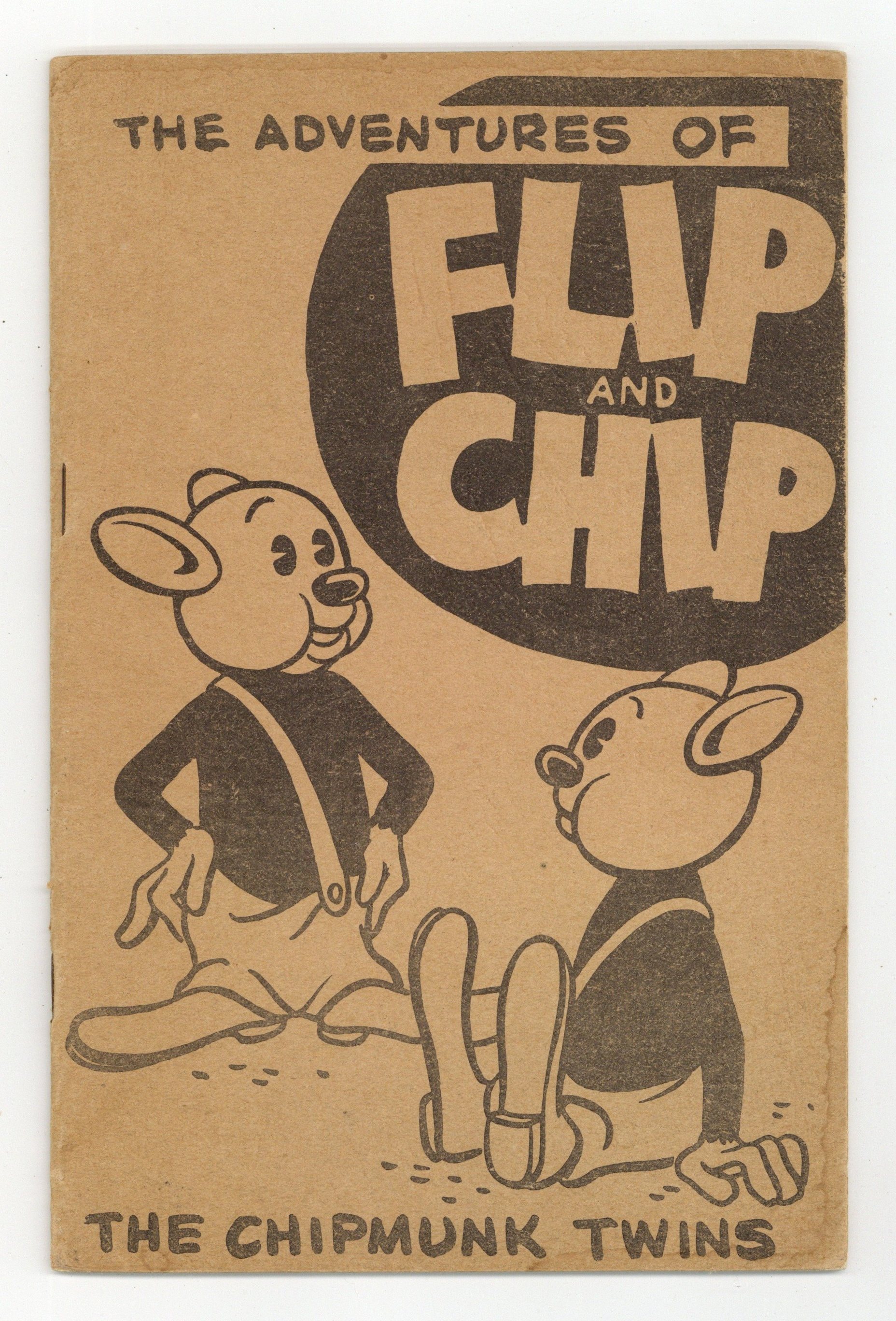 The Adventures of Flip and Chip, the Chipmunk Twins (1949), written by Fred C. Hubbard, with quality art by James Gibson and John Kessler, is a children's comic strip book told in a combination of text and newspaper dailies styles. The story of Flip and Chip appears to have originally been a failed newspaper comic strip that was never picked up by a synidcate, but was later published in this format and marketed, we believe, as a promotional giveaway for stores. Like many rare, obscure items from the early days of comics, the complete history of this item may never be known. Not listed in price guides as of this writing (2005). Published by the Paxton Press, Roanoke, Virginia. 28 pages, B&W, heavy cover stock (printed on multiple colors) white interior paper, 5.5-in. x 8.25-in, no cover price.