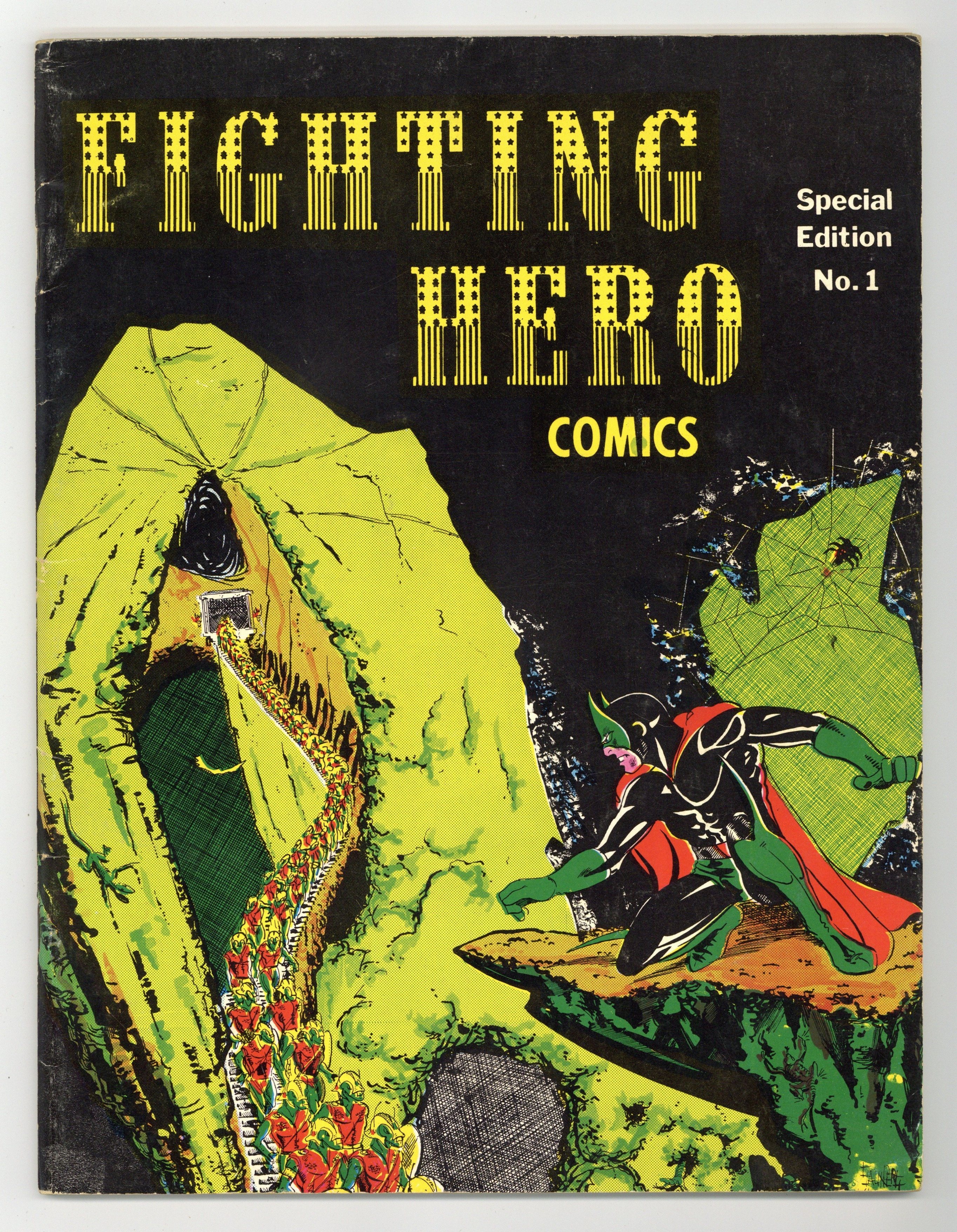 Fighting Hero Comics (1967) is a fanzine published by SFCA. Color cover by Buddy Saunders. All reprints: the Demon in "The Tower Doom of Venus" (script and art by Buddy Saunders; from Fighting Hero Comics # 6), the Eye in "The Eye Unmasked" (script and art by Biljo White; from FHC 10), an untitled "Demon" story (by Saunders), "The Black Scorpion" (script by Raymond Miller, art by Howard Keltner), and The Demon in "The Books of Nimrath" (by Saunders; from FHC 4). 48 pages, color cover with black and white illustrations, 8-in x 10.75-in. Cover price $0.20.
