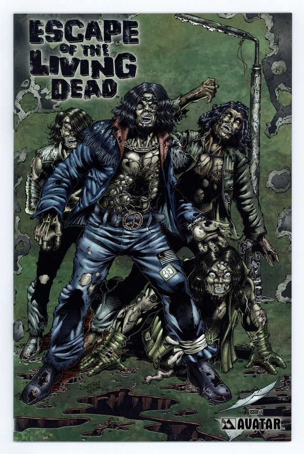 Platinum Foil Cover. Limited to 1550 copies. Comes with Avatar Certificate of Authenticity. - by John Russo & Dheeraj Verma. The writer of the classic film Night Of The Living Dead brings his all-new, never-before- seen zombie masterpiece to comics! 1971: It's been three years since the bloodsoaked night that the dead rose from their graves, attacking and devouring the living. Now, the legacy of that horrific and unexplained event is about to be unleashed once again upon an unsuspecting world... But this time, there may be no escape for those in the terrifying clutches of the cannibalistic, living dead! Hidden within the concrete walls of a secret medical research lab, someone has been studying the last remaining undead remnants of the marauding zombie army. Unleashed by the untimely intervention of a group of roadweary bikers looking for an easy score, the walking dead renew their gutripping campaign of terror. As each member of a rural community dies in the grotesque feeding frenzy of the zombies, so does the nightmare army grow, as halfeaten victims rise up to join the ranks of the undead. Can anything possibly contain the contagion being spread by the Escape Of The Living Dead? As well as this regular cover by series artist Dheeraj Verma, it's also available with a Wraparound and Gore by Verma, a Terror cover by Mike Wolfer, and a super-limited black leather cover with art by Mike Wolfer. MATURE THEMES REGULAR?32pgs, FC (1 of 5)SRP: $3.99 WRAPAROUND?32pgs, FCSRP: $3.99 TERROR?32pgs, FCSRP: $3.99 GORE?32pgs, FCSRP: $3.99 LEATHER?32pgs, FCSRP: $19.99