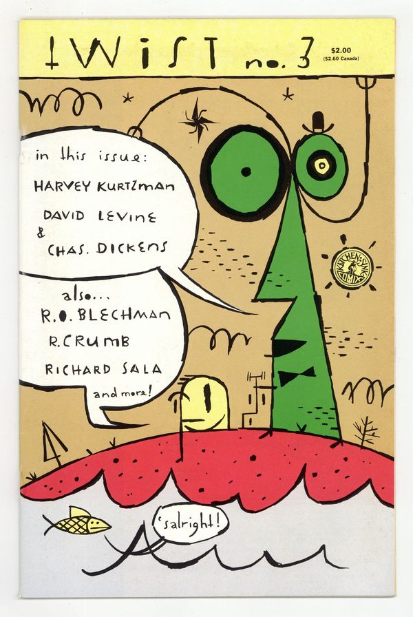 Published Oct 1988 by Kitchen Sink.$16.00Cover by J. D. King. Edited by J. D. King. Stories by Robert Crumb, Dan Clowes, Harvey Kurtzman, Anthony Mostrom, R. O. Blechman, J.D. King, John Holmstrom, Josh Gosfield, and Richard Sala. Kitchen Sink Press humor anthology, featuring a reprint of Kurtzman's1960s Esquire magazine version of A Christmas Carol, recasting Scrooge as a TV executive. Final issue of the series. 32 pages, B&W. Mature Readers. Cover price $2.00.