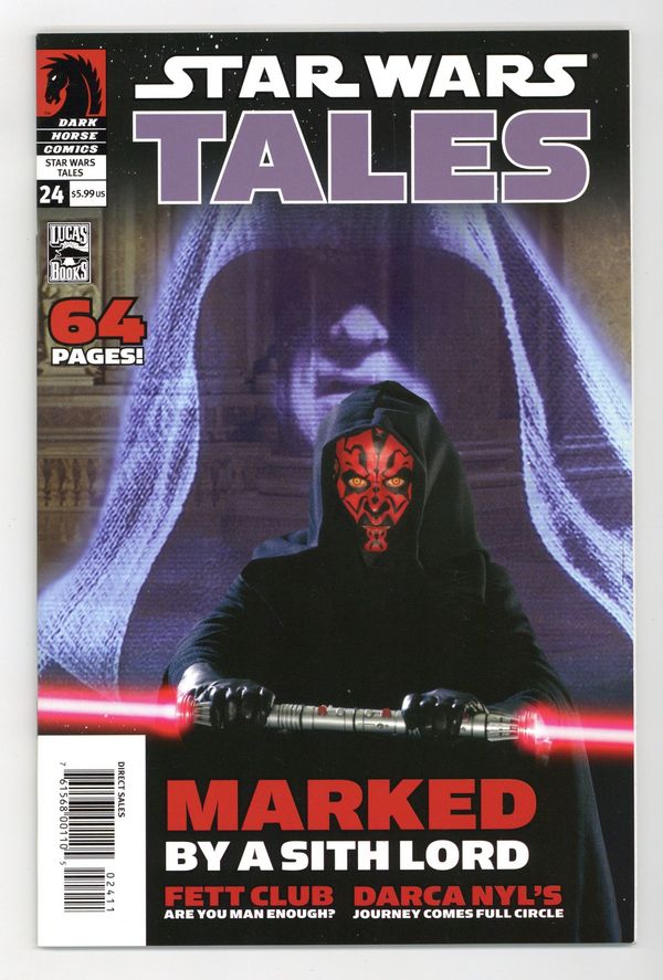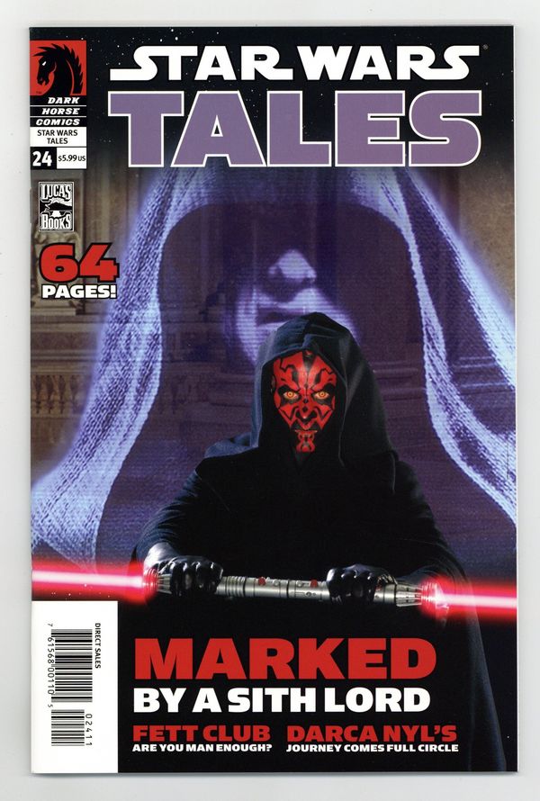 Tags: Star WarsPublished Jun 2005 by Dark Horse.$40.00ROB WILLIAMS (W), LUCAS MARANGON (W/A), BRANDON BADEAUX (A), and various, TBA (Cover) and Photo cover On sale June 8, FC, 64pg, $5.99 Powerful is the dark side of the Force; its corrupting, seductive pull has produced some of the most memorable villains in the Star Wars galaxy. Exploring the moral and emotional fall-out that comes with giving oneself over to the ways of the Sith, this issue features four stories steeped in darkness and danger, spanning nearly every Star Wars era, including the final act of our serialized tale, "Nomad." The truth about wandering Jedi Darca Nyl is at last revealed, but will the end of his journey bring him peace ... or even more trouble? The premier Star Wars comics anthology rolls onward. Cover price $5.99.