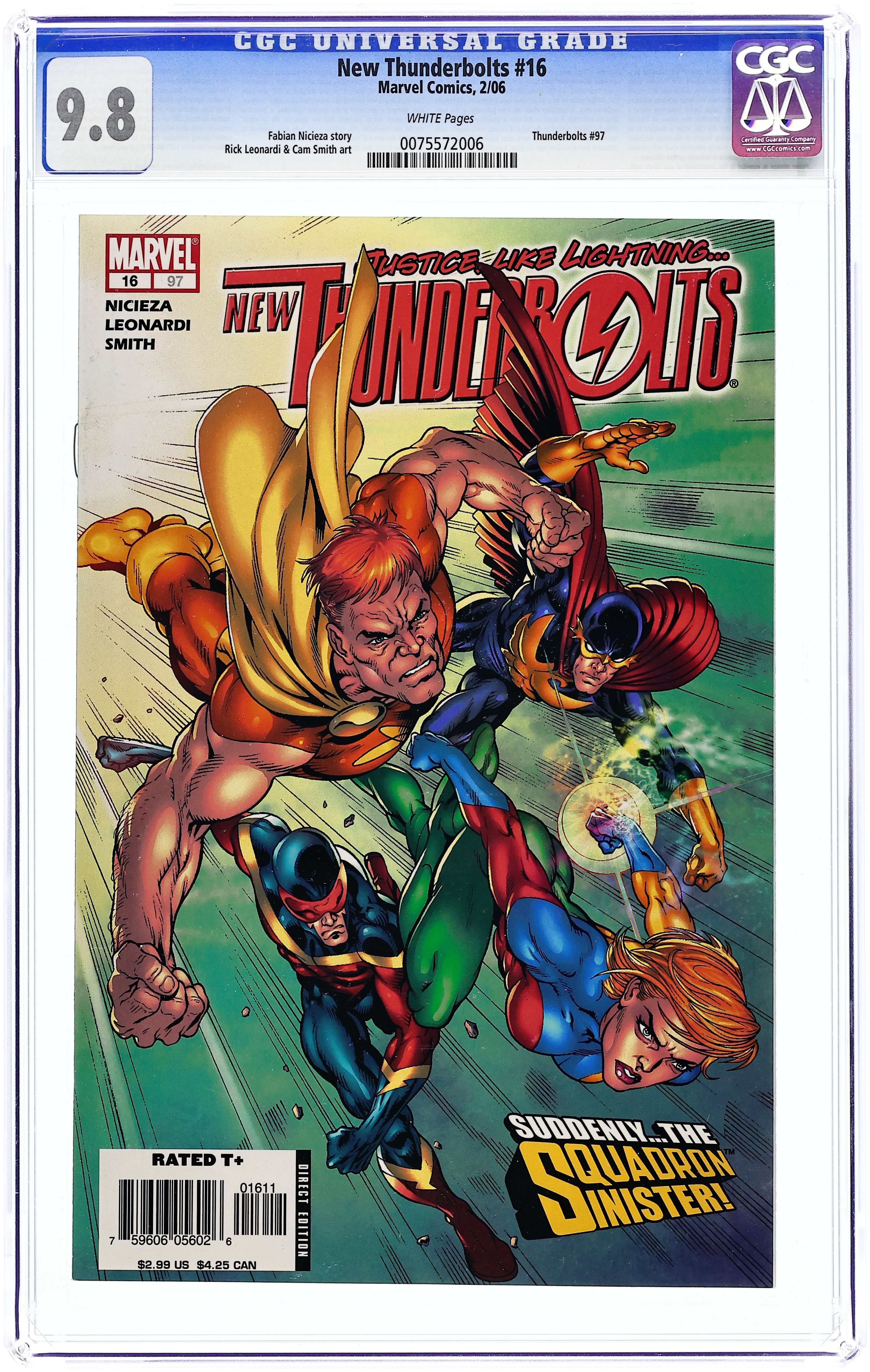 Written by FABIAN NICIEZA Penciled by RICK LEONARDI Cover by TOM GRUMMETT. The NEW Squadron Sinister has brought the house down, but are they the good guys -- or bad guys? And what does Speed Demon do when they make a recruitment offer he doesn't want to refuse? Plus: M.A.C.H. IV's mysterious recruitment drive continues... 32 PGS./T+ SUGGESTED FOR TEENS AND UP ...$2.99 Cover price $2.99.