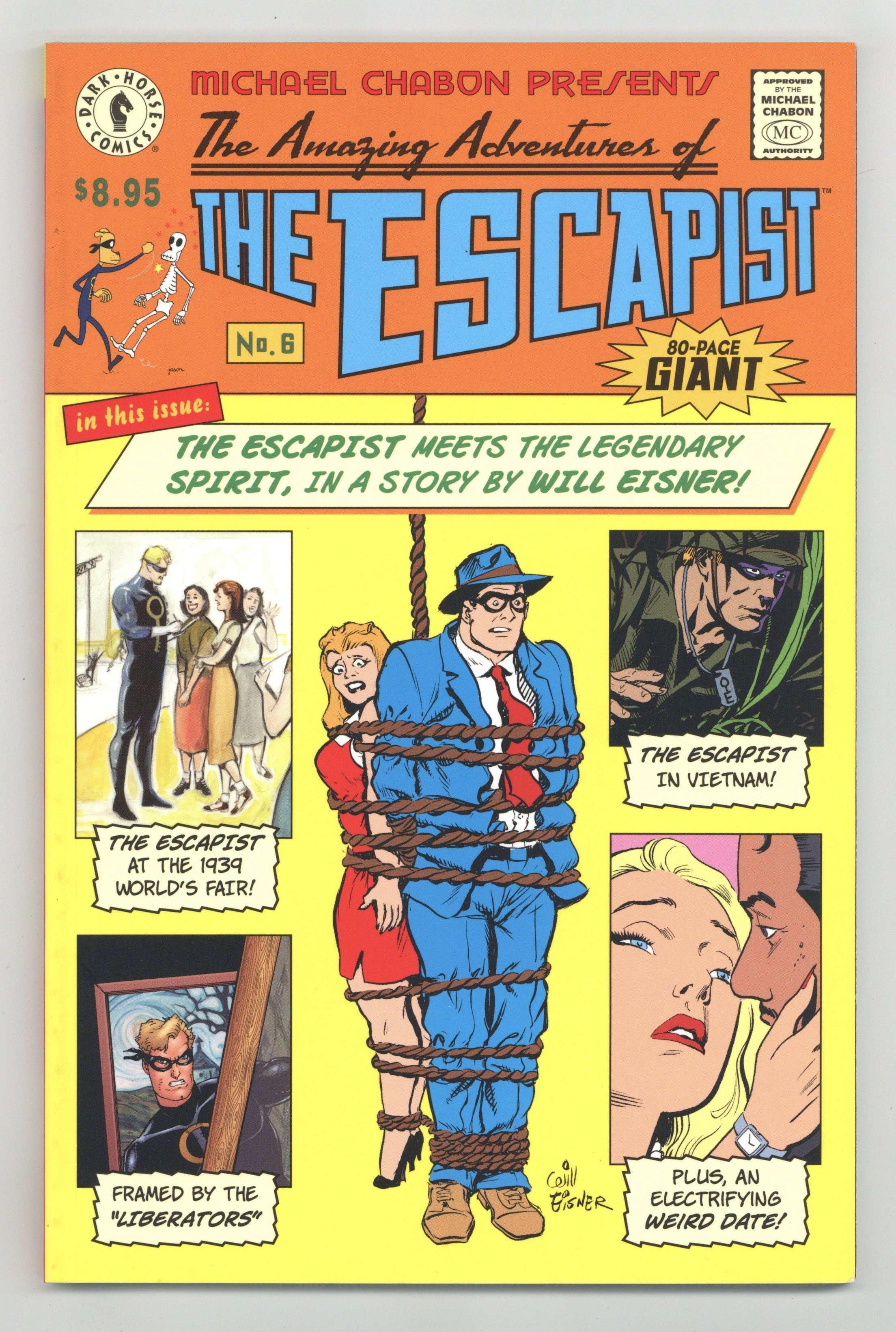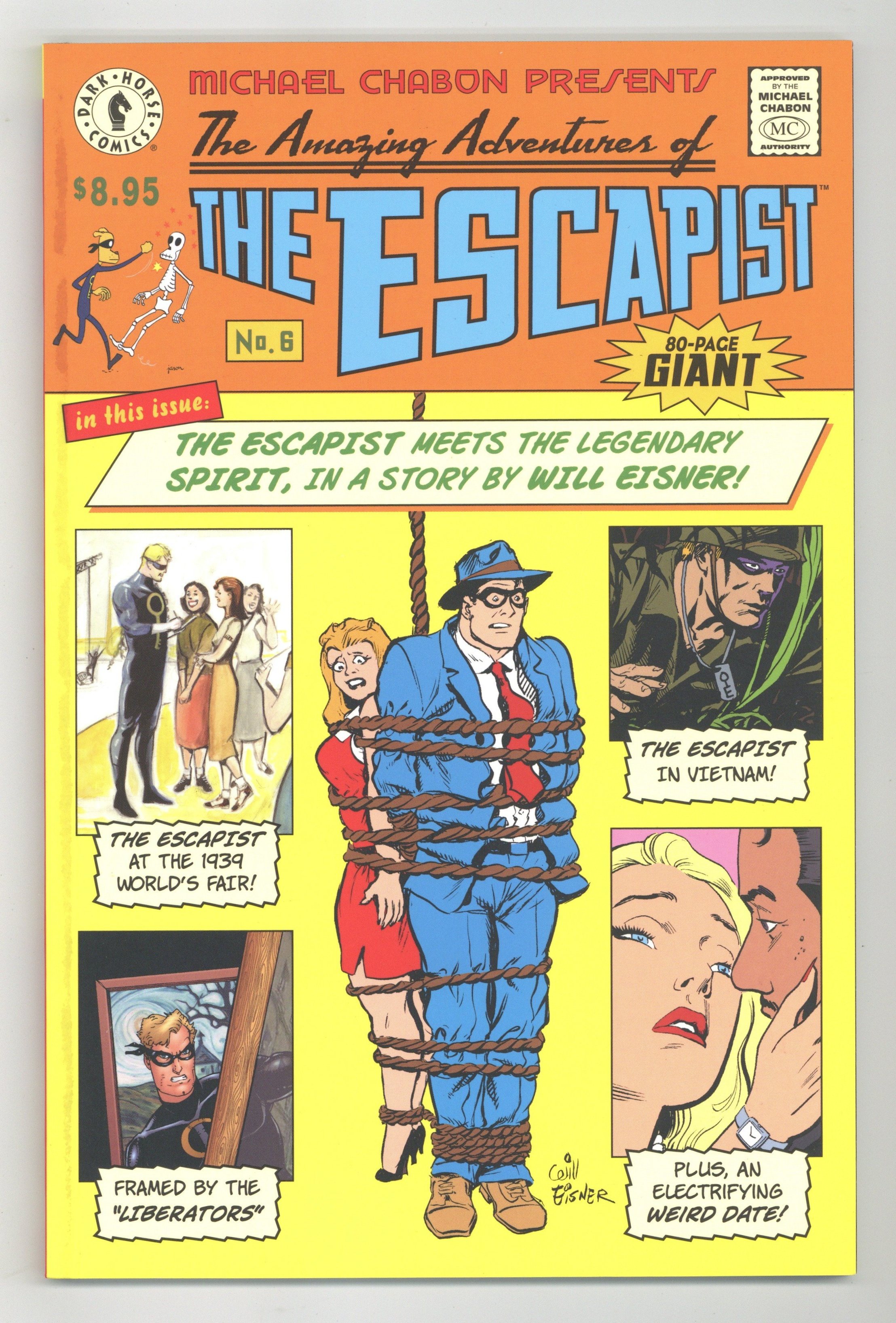 Published Apr 2005 by Dark Horse.$10.00ESCAPIST #6 WILL EISNER (W/A), THOMAS YEATES (A), CHRIS OFFUTT (W), STEVEN GRANT (W), HOWARD CHAYKIN (W/A), JASON (W/A), DAN BEST (W), EDDIE CAMPBELL (W/A), and NORM BREYFOGLE (A) On sale April 13, FC, 80pg, $8.95 In these pages, the Spirit meets the Escapist! That's right?legendary comics godfather Will Eisner returns to his world-famous creation for a meeting that neither WWII-era hero will soon forget. This is the first new Spirit story both written and drawn by Eisner to see print in decades! Also in this issue is the comics writing debut of Lannan and Whiting award winner Chris Offutt! Thomas Yeates (Conan) lushly illustrates this celebrated author's tale of the Escapist in Vietnam. Dan Best and Eddie Campbell (From Hell) present a fully-painted story of the Empire City 1939 World's Fair, and Howard Chaykin (American Flagg!) returns to concoct "Liberators," a fact-based tale of art looted by the Nazis, set in 1945 Paris! Norwegian indy cartoonist JASON contributes an Escapist spoof, and Steven Grant and Norm Breyfogle proffer the first Weird Date story of the anthology! One of the myriad classic titles created by Kavalier & Clay, Weird Date featured mixes of classic Alex Toth romance comics and outrageous Jack Cole crime comics of the sort that put Dr. Freddie Wertham's undies in a twist! ? Cover art by living legend Will Eisner features two of his most famous characters: the Spirit and Ellen Dolan! Cover price $8.95.