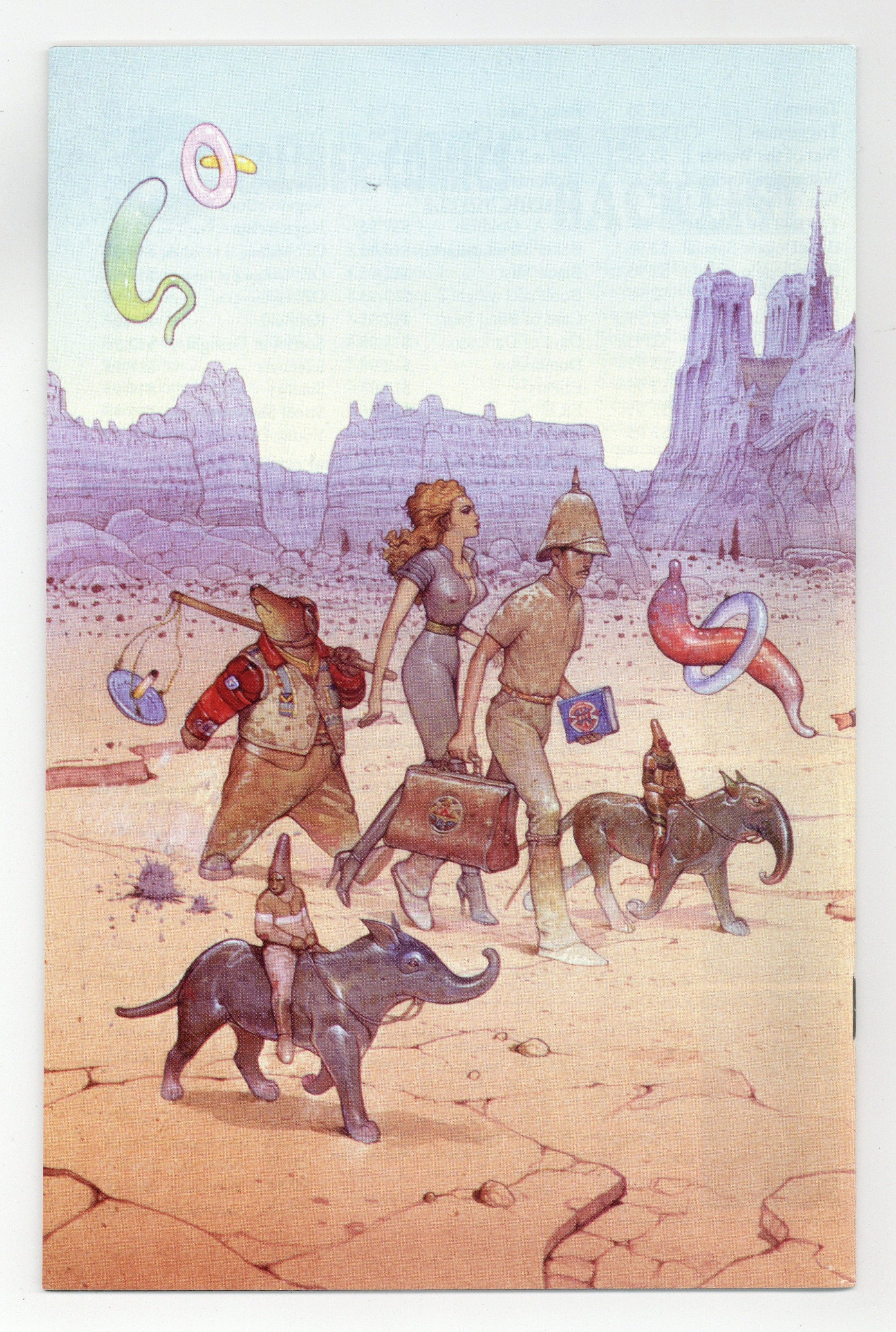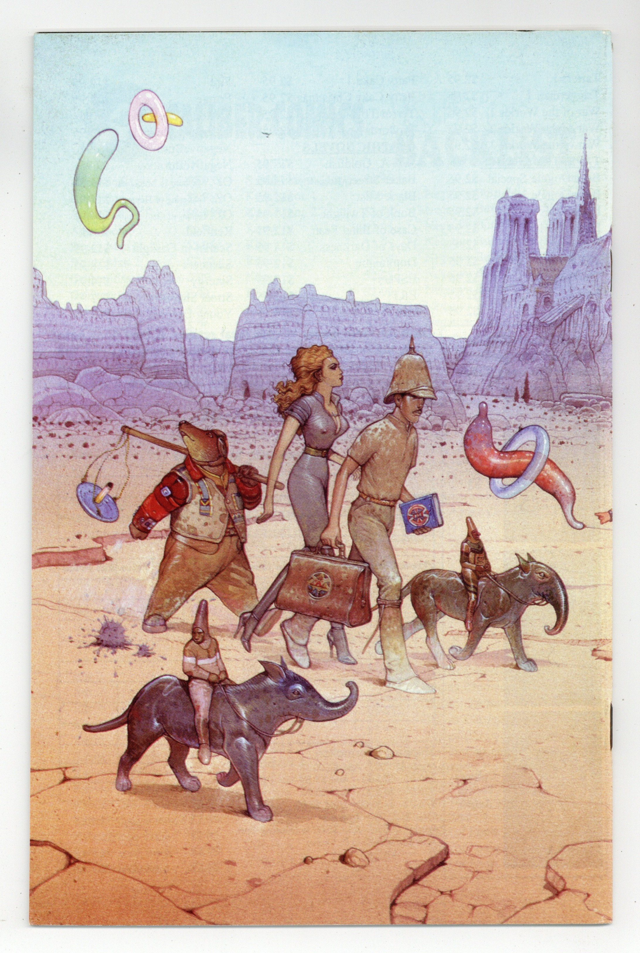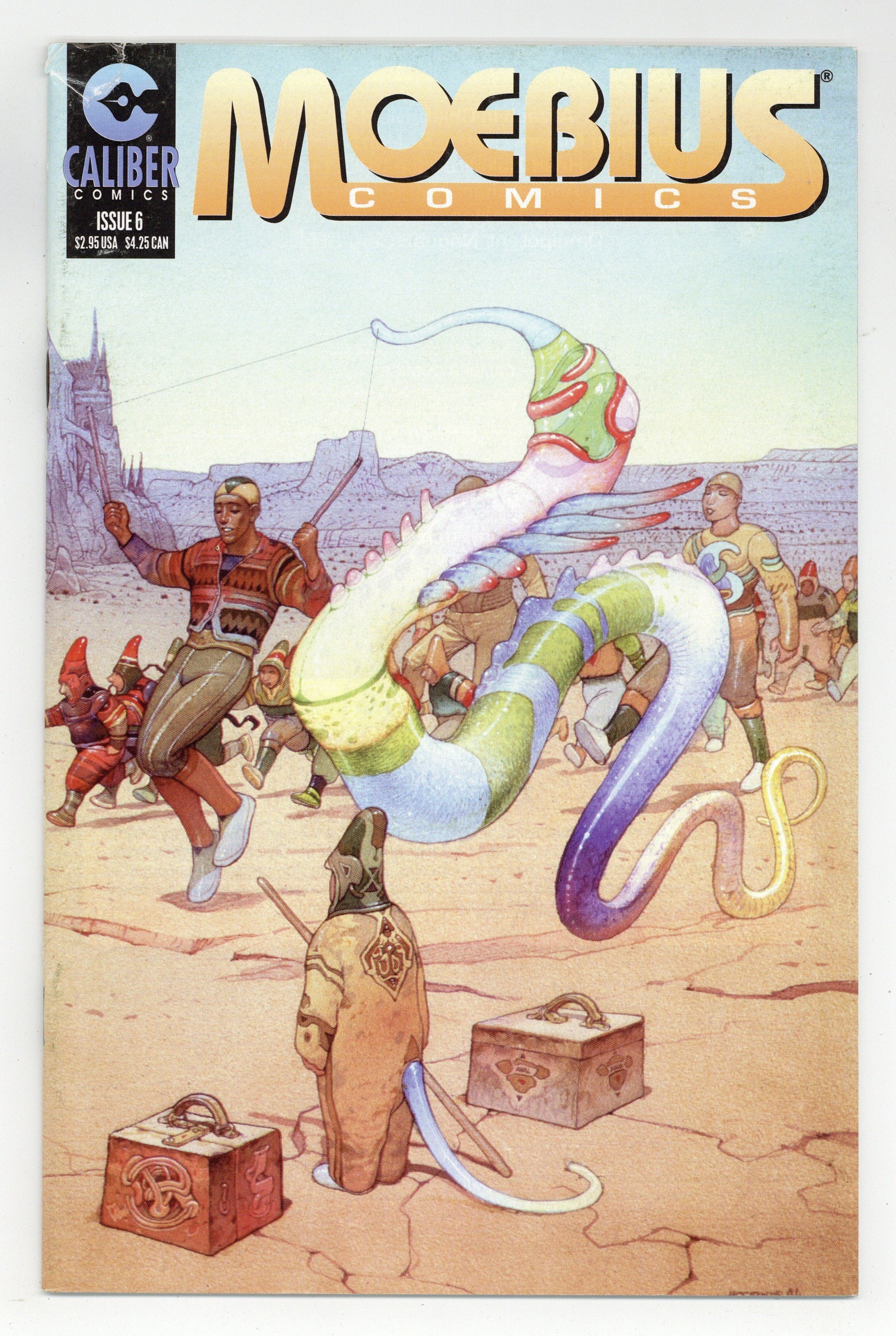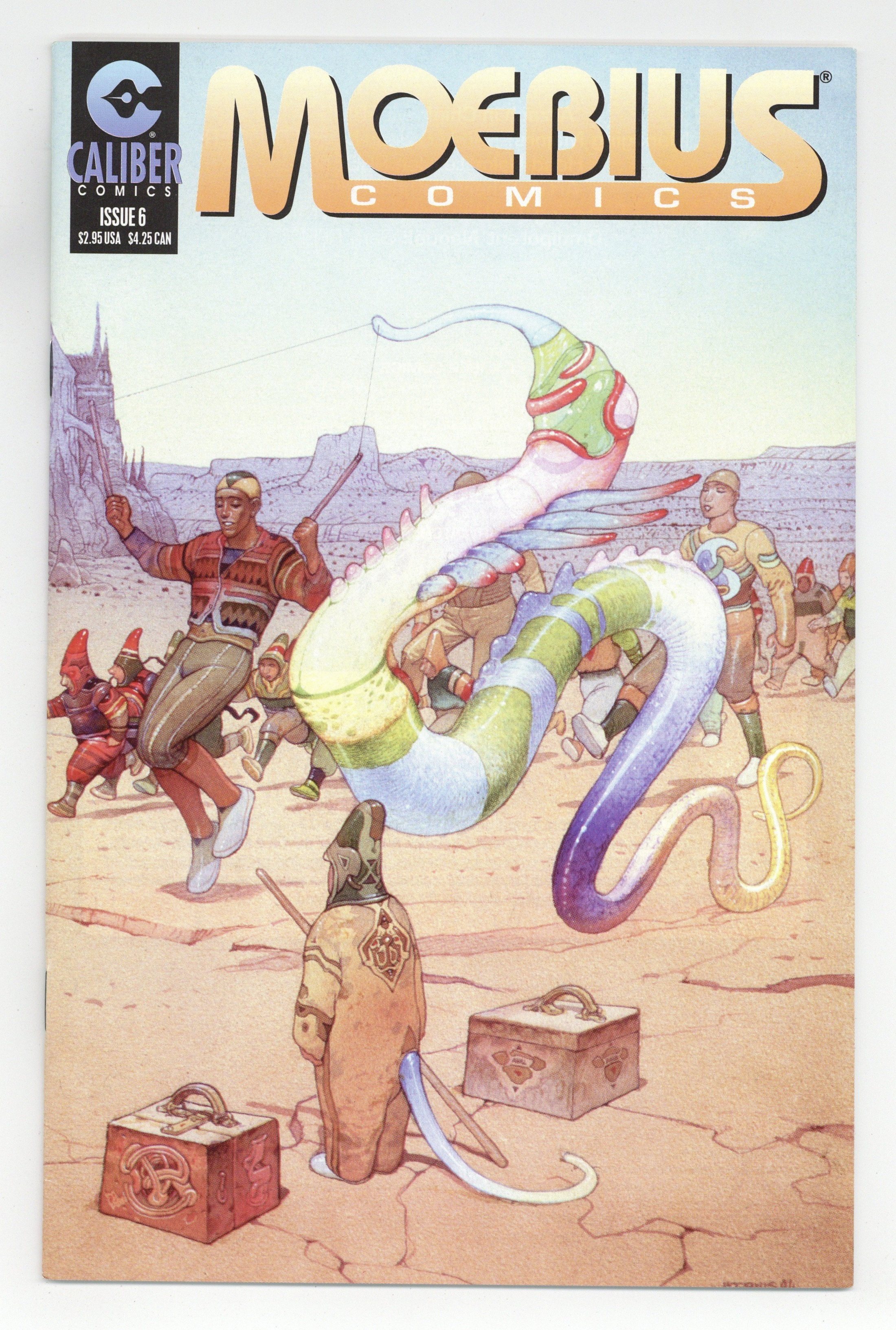 Stories by Moebius and Jean-Luc Coudray. Art and cover by Moebius. Caliber presents classic stories and little-known tales by legendary French cartoonist Jean Giraud, better known as Moebius. The conclusion of the environmental story The Still Planet, and the storyboards for the unfinished animated film Internal Transfer. Final issue of the series. 32 pages, B&W. Mature readers. Cover price $2.95.
