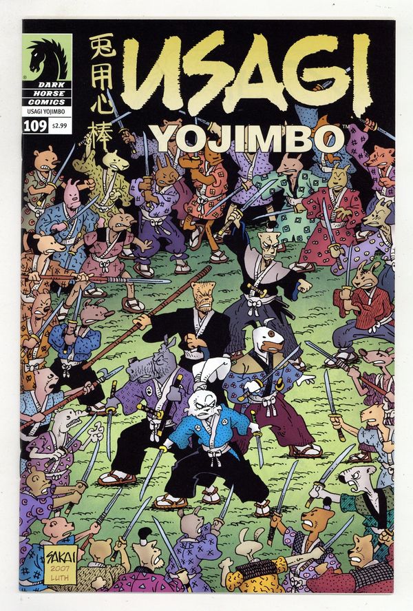 Published Jan 2008 by Dark Horse.$12.00STAN SAKAI (W/A) On sale Jan 30 The gripping 'Sparrows' saga comes to its surprising conclusion as Usagi, Gen, Stray Dog, and Sanshobo find themselves trapped in a small temple surrounded by bounty hunters! These hunters are after one thing-Boss Bakuchi's reward for his son's killer: Inazuma. Yet Usagi and his companions cannot turn the swordswoman over to the mob while she is still possessed by Jei the Black Soul. Sanshobo must exorcise the demon, but where will it go when it leaves Inazuma? And what does the mysterious samurai Isamu have to do with all this? Find out Isamu's true identity and the fate of Inazuma, this month in Usagi Yojimbo! 2007 Harvey Award winner! Cover price $2.99.