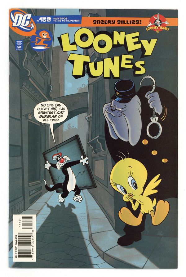 Cover by Scott Gross. Written by Robbie Busch, Frank Strom and Sam Agro. Art by Omar Aranda, Walter Carzon, Mike DeCarlo, Pablo Zamboni, Alberto Saichann, Ruben Torreiro and Horacio Ottolini. Inspector Tweety is on the tail of that notorious art thief, Sylvester! And they're headed straight for the Louvre in "Louvre It or Leave It (You'd Look Funny Without It)" by Robbie Busch, Omar Aranda and Alberto Saichann. Plus: Porky Pig and Daffy Duck in "Docs and Robbers" by Frank Strom, Walter Carzon and Ruben Torreiro; 2-page Sylvester and Tweety story "A Bird in the Hand" by Sam Agro and Mike DeCarlo; and Foghorn Leghorn in "Twister Blister" by Sam Agro, Pablo Zamboni and Horacio Ottolini. 32 pages, full color. Cover price $2.25.