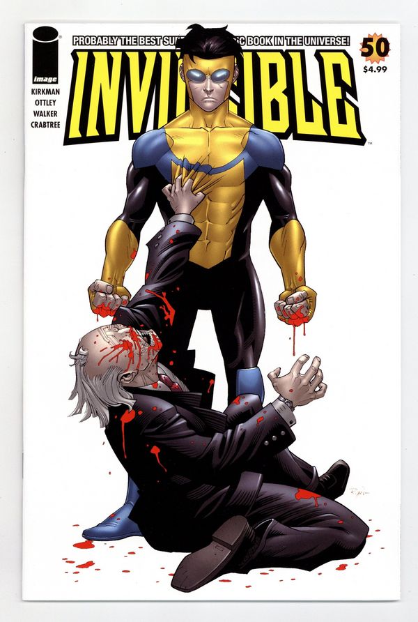 story ROBERT KIRKMAN art RYAN OTTLEY, CORY WALKER & BILL CRABTREE cover RYAN OTTLEY & VAL STAPLES It's all been building to this. After five long years, the best superhero comic book in the universe has reached its monumental FIFTIETH ISSUE! Invincible and Cecil Stedman face off and after this issue, nothing will ever be the same. Also in this issue, Science Dog returns in an all-new back-up story... and the ORIGIN OF CECIL STEDMAN! Cover price $4.99.