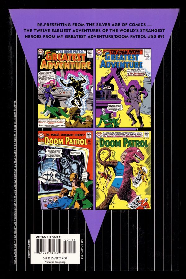 Reprinted as they originally appeared in the 1960s, this archive edition includes the Doom Patrol's first appearance and origin, as well as their first battles with their greatest adversary, General Immortus, the prehistoric monster menace Dr. Janus, the subterranean Atomic Furies, and the mutant Animal-Vegetable-Mineral Man.