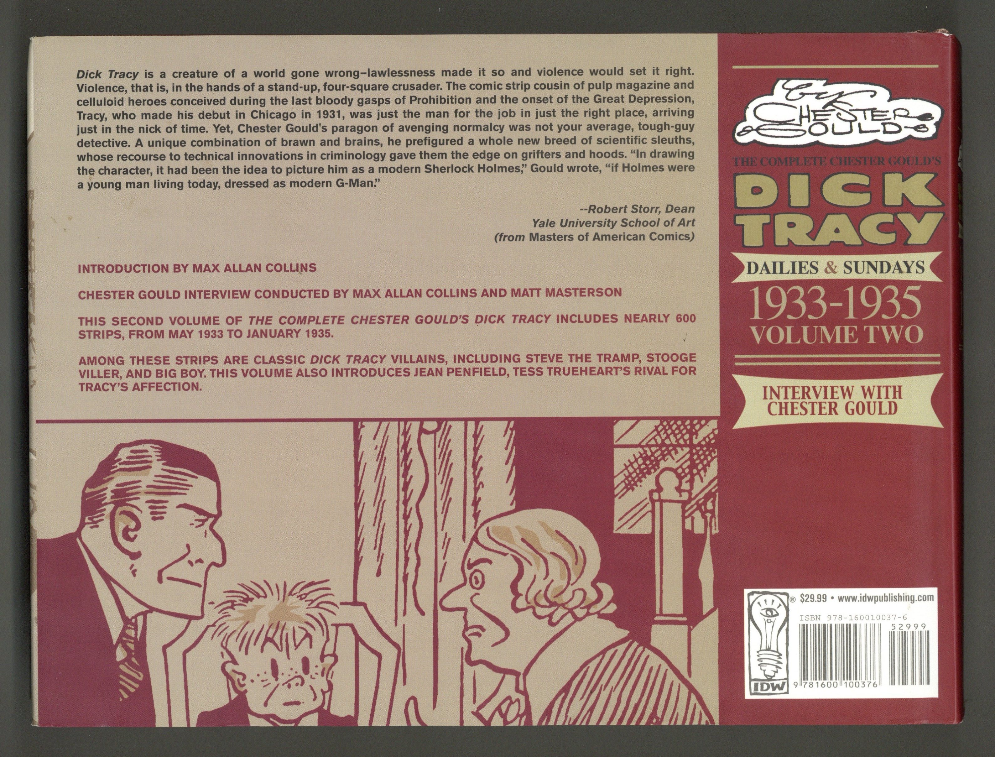 Volume 2 - 1st printing. "1933-1935!" Presenting the second volume of IDW Publishing's deluxe hardcover collection of Chester Gould's timeless comic strip, Dick Tracy. Volume Two once again contains nearly 500 comic strips from the series' early years, this time covering material that originally ran from May 1933 through January 1935. This special volume features an introduction from Consulting Editor and longtime Tracy writer Max Allan Collins, as well as part two of the interview between Collins and creator Chester Gould. Each volume will feature book design from award-winning designer/artist Ashley Wood. Hardcover, 10-in. x 7 1/2-in., PC/PB&W. Cover price $29.99.