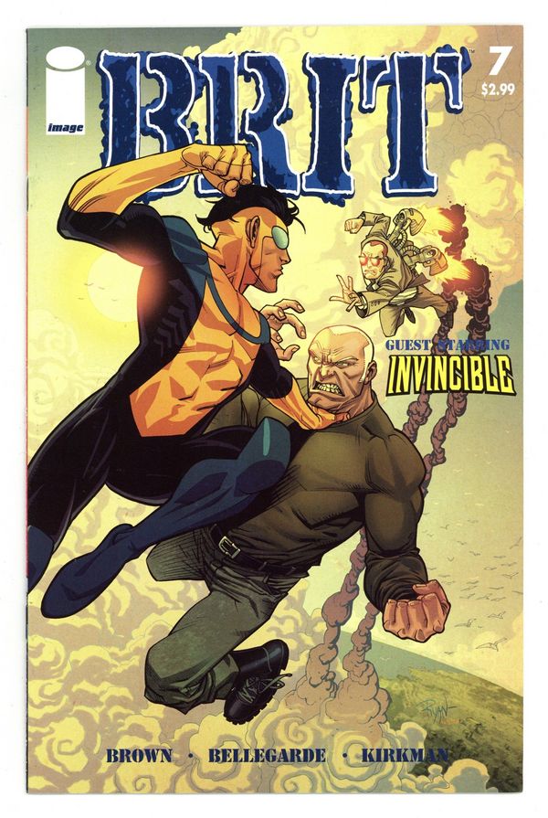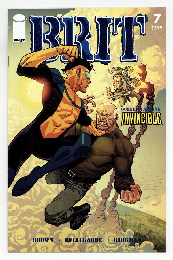 story BRUCE BROWN art NATE BELLEGARDE & ANDY KUHN cover RYAN OTTLEY & KELSEY SHANNON edited by ROBERT KIRKMAN GUEST-STARRING INVINCIBLE! It's 'Invulnerable' versus 'Invincible' in a knockdown, drag-out brawl to end them all! Two heroes - one old enough for social security, one not old enough to drink - forced against each other. It's a story of strip clubs, giant robots and the terror from a transdimension! Cover price $2.99.