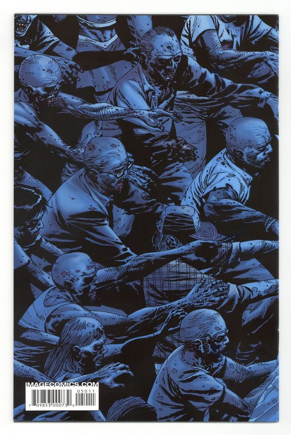 Cover by CHARLIE ADLARD. All alone now. For this landmark 50th issue we present a special stand-alone tale that will both warm your heart and chill you to the bone. THE WALKING DEAD #50 story ROBERT KIRKMAN art CHARLIE ADLARD & CLIFF RATHBURN. ? 32 PAGES ? BW ? Cover price $2.99.