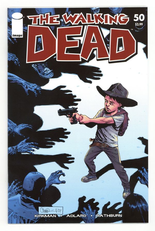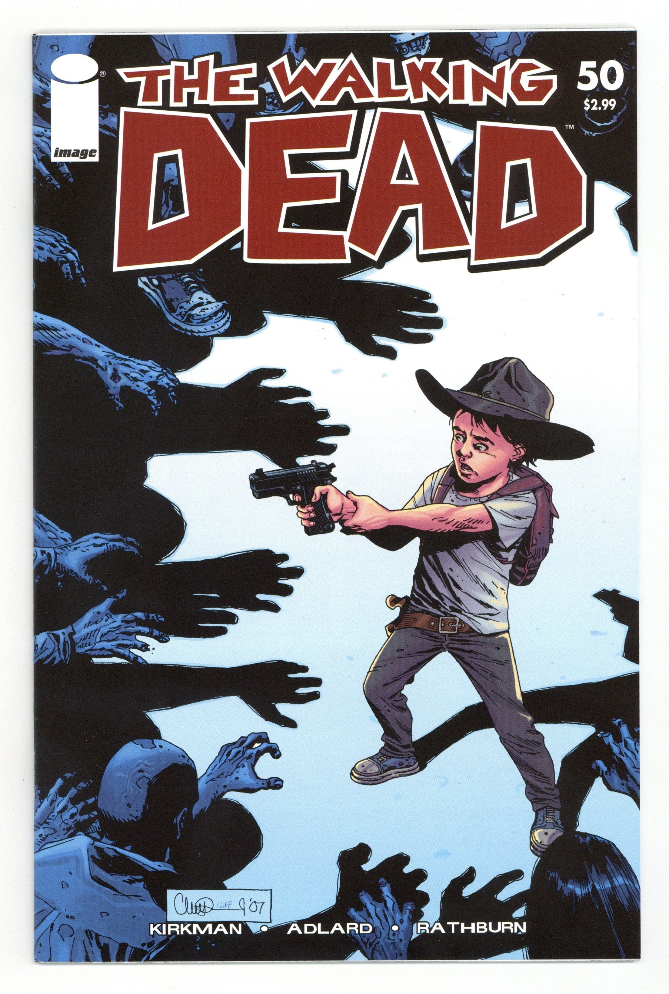 $20.00Cover by CHARLIE ADLARD. All alone now. For this landmark 50th issue we present a special stand-alone tale that will both warm your heart and chill you to the bone. THE WALKING DEAD #50 story ROBERT KIRKMAN art CHARLIE ADLARD & CLIFF RATHBURN. ? 32 PAGES ? BW ? Cover price $2.99.