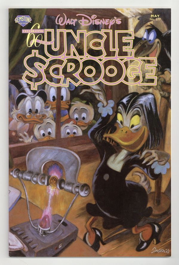 Published May 2008 by Dell/Gold Key/Whitman.$18.00by Geoffrey Blum, Daan Jippes & Don Rosa This special issue highlights fan-favorite Geoffrey Blum! Rats invade Scrooge's Money Bin in 'Powerplay on Killmotor Hill,' and Magica bewitches Scrooge in 'Scent of a Sorceress.' And Donald's 'Race for the Golden Apples' is based on a lost Carl Barks story idea! A new Don Rosa poster wraps the book. 68 pages, full color. Cover price $7.99.
