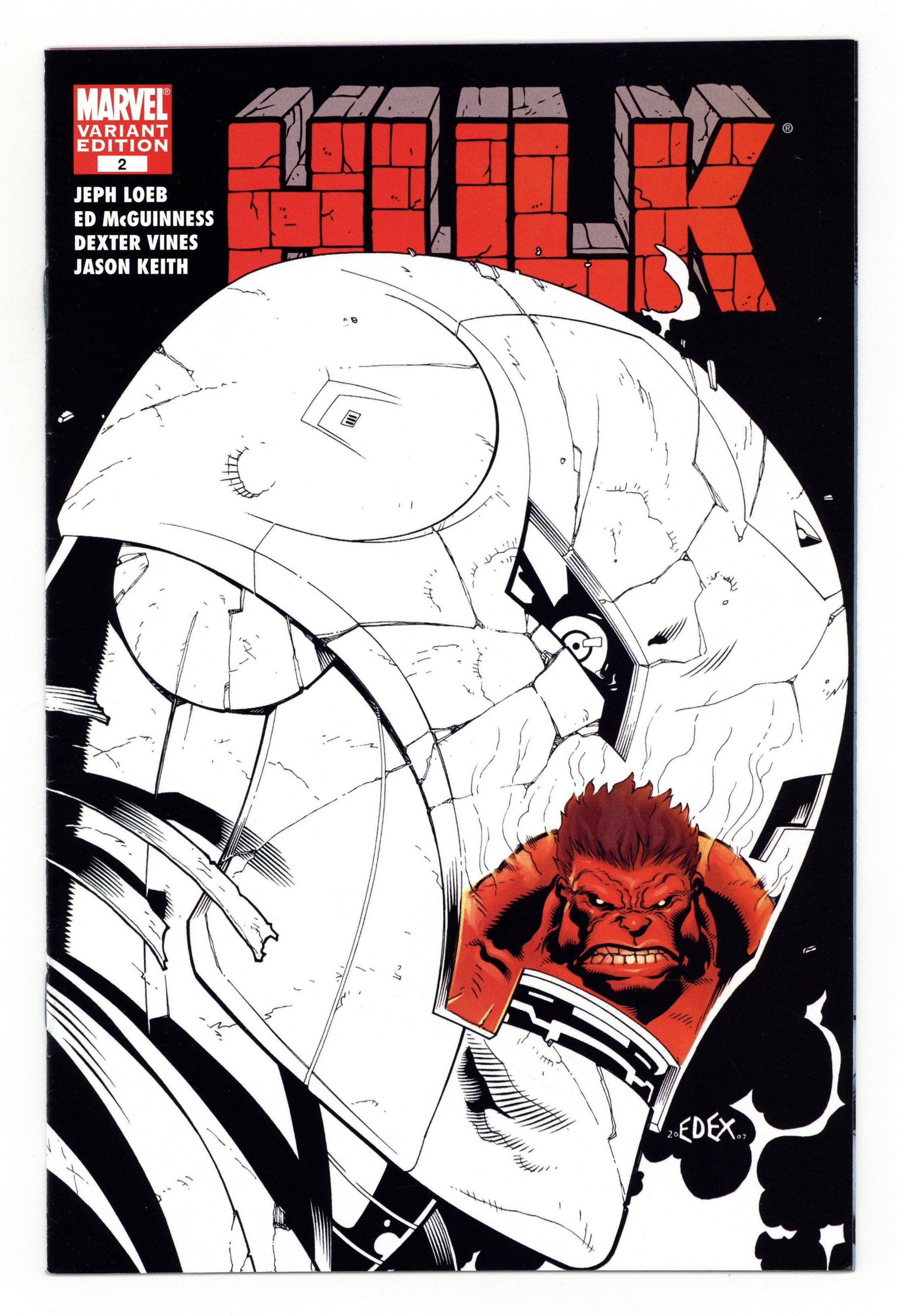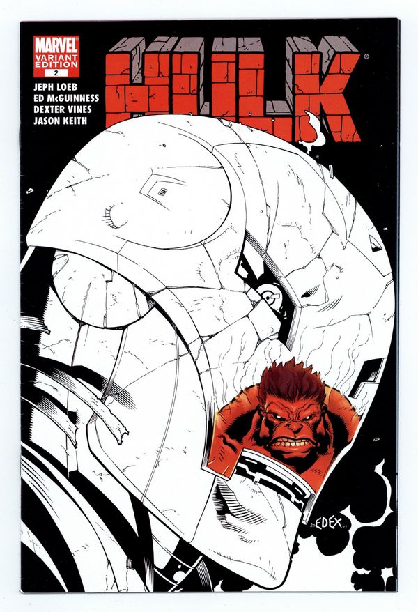 First Printing Limited Edition Variant Cover. Written by JEPH LOEB Pencils & Cover by ED MCGUINNESS. Who is The Red Hulk? Part II. After last issue's shocking murder, there's evidence on the S.H.I.E.L.D. Helicarrier that will bring down the killer. So...The Hulk is going after it - and might bring down the Helicarrier instead! The one person standing in the Hulk's path - Iron Man! Also, the return of the LAST person you ever expected to see! Game on! Cover price $2.99.