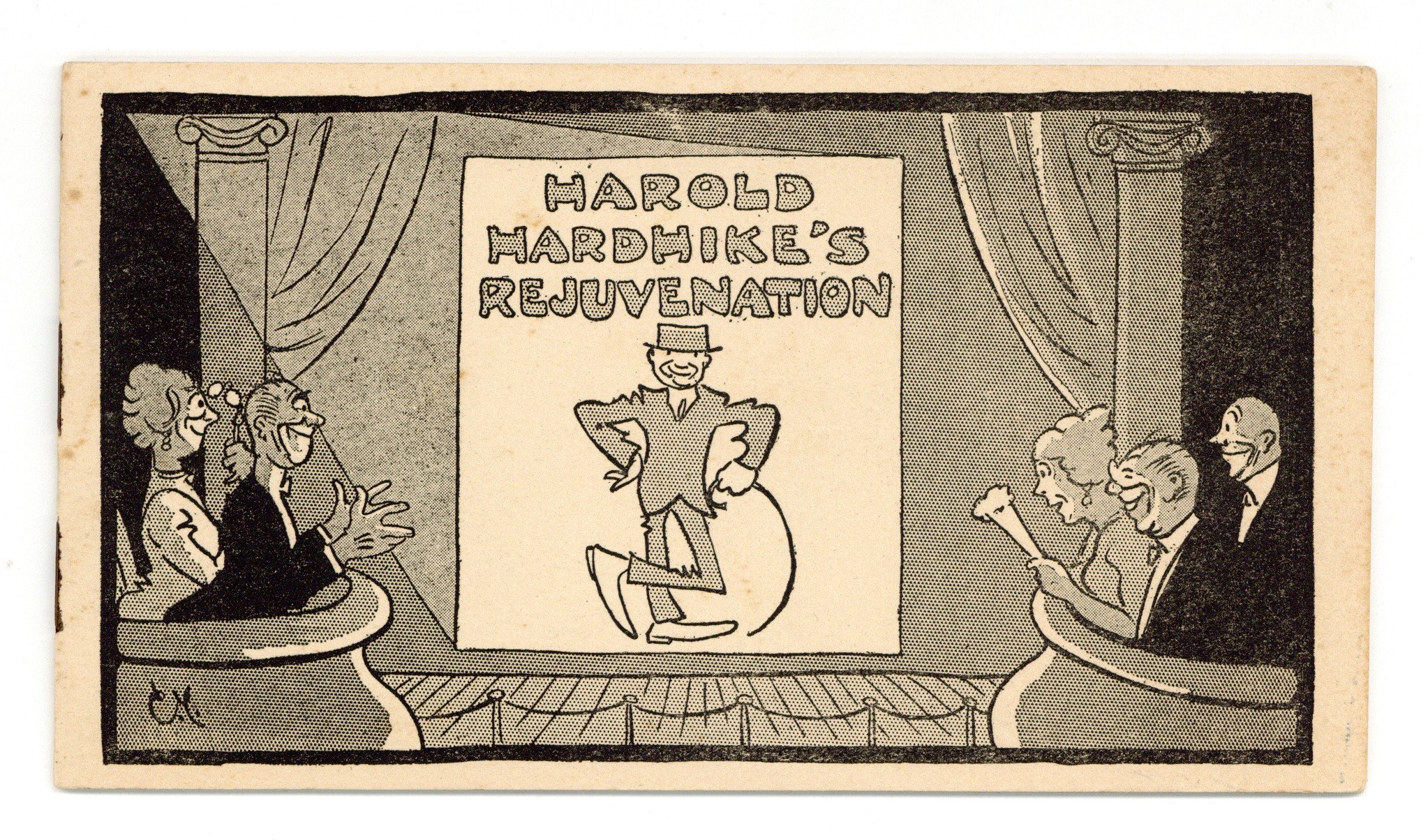Harold Hardhikes Rejuvenation (1915) is a promotional mini comic published by O' Sullivan Rubber Co. Join grumpy Harold Hardhike as he discovers that a pair of O' Sullivan heels are exactly what his back and his marriage need. Art by Crawford Young, future creator of the "Clarence" newspaper strip. 16 pages, black and white cover with black and white illustrations in the interior, 6.25-in x 3.50-in.