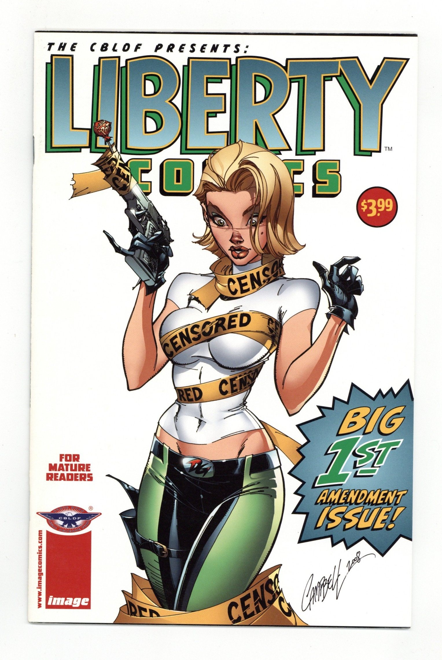 $28.00Second Printing. Cover by J. Scott Campbell. LIBERTY COMICS: A CBLDF BENEFIT BOOK (ONE-SHOT) stories ED BRUBAKER, DARWYN COOKE, GARTH ENNIS, MARK EVANIER & MARK MILLAR art SERGIO ARAGONES, DARWYN COOKE, JOHN PAUL LEON, SEAN PHILLIPS & DARICK ROBERTSON covers J. SCOTT CAMPBELL & MIKE MIGNOLA DEFEND YOUR LIBERTY! The Comic Book Legal Defense Fund and Image Comics defend your freedom of speech with LIBERTY COMICS, an all-new 32-page, full color comic book crammed cover-to-cover with work by many of today's top creative talents. This mature readers anthology is printed in a high quality format and features all-new stories of THE BOYS and CRIMINAL as well as all-new creations from some of your favorite artists. All proceeds benefit the CBLDF and their efforts to protect your creative rights! JULY 23 ? 32 PAGES ? FC Cover price $3.99.