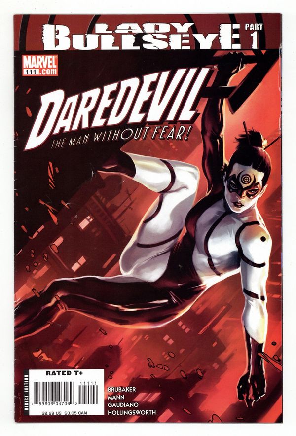 Cover by Marko Djurdjevic. Lady Bullseye: Part 1 of 5 - Written by Ed Brubaker Penciled by CLAY MANN. Be there when Matt Murdock first encounters a shocking new face -- Lady Bullseye! Who is she? Where did she come from? What does she want? And will she be a foe to Daredevil...or a friend? We can't make a peep yet, but it's the perfect jumping-on point as an alarming new chapter begins in the acclaimed DAREDEVIL run by Ed Brubaker and Michael Lark! LADY BULLSEYE!! 32 PGS./Rated T+ Cover price $2.99.
