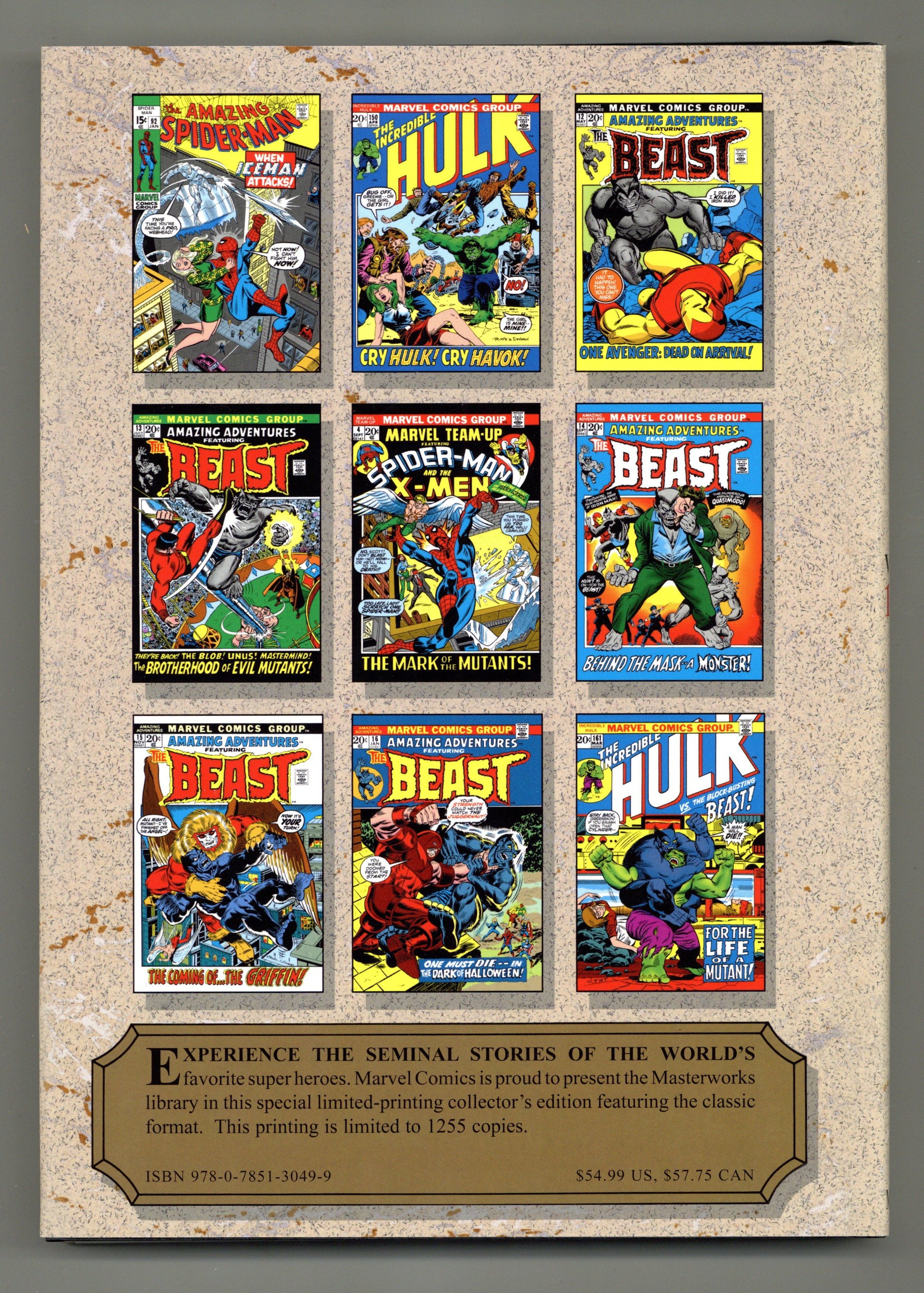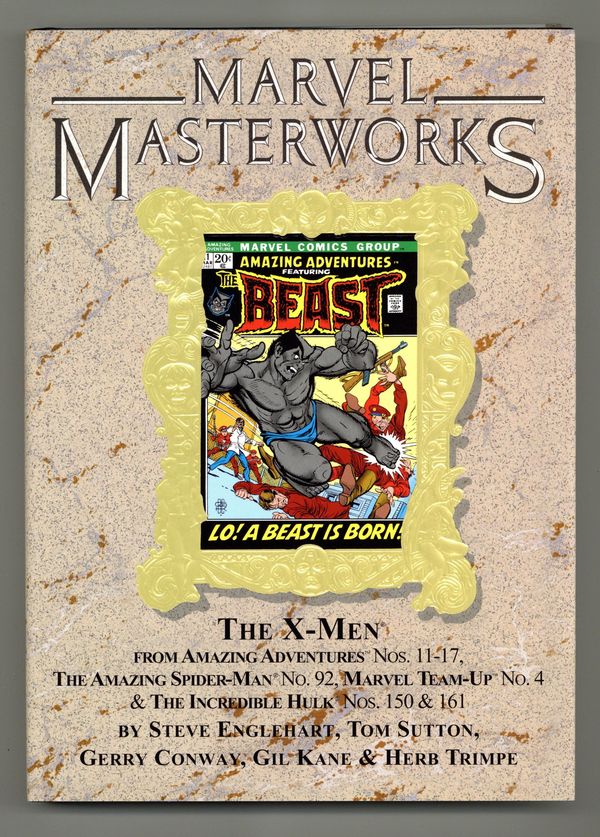 Volume 105 - 1st printing. "X-MEN!" Collects Amazing Adventures (1970-1976 2nd Series) #11-17, Incredible Hulk (1962-1999 1st series) #150 and 161, Amazing Spider-Man (1963-1998 1st Series) #92, Marvel Team-Up (1972-1985 1st Series) #4, and the rare UNCANNY X-MEN #67-80 and ANNUAL covers. Written by STEVE ENGLEHART, GERRY CONWAY, STAN LEE and ARCHIE GOODWIN. Art by TOM SUTTON, GIL KANE, HERB TRIMPE, BOB BROWN, MARIE SEVERIN and JIM STARLIN. Cover by GIL KANE. Introduction bySteve Englehart. Continuing the story of Marvel's original mutant adventurers, the MARVEL MASTERWORKS brings you the rarest X-Men appearances collected together for the first time ever! When the merry mutants hit the skids, they don't buckle under - they hit the road, and you're riding shotgun. So sit back and get ready for a set of stories that rock the X-Men world to this day! Pushed undercover by mutant paranoia run amok, the Beast sets off on his own, taking a genetic research job with the Brand Corporation. But Hank McCoy's scientific curiosity will come to curse him forever as an experiment gone horribly wrong turns him truly into a beast. Fanged, covered in head-to-toe fur, hunched over and driven to bouts of furious bloodlust, McCoy must struggle to retain his humanity as he struggles against the Brotherhood of Evil Mutants, Quasimodo the Living Computer, Juggernaut, the mutant Mimic and the emerging menace of the Secret Empire that seeks to rend the X-Men asunder. Meanwhile, you'll see Havok and Polaris head to the desert Southwest - but somehow excitement doesn't stray far when the green-haired magnetic mutant encounters the green goliath himself, the Incredible Hulk! Iceman engages in aerial battle with someone who might not call him "friend," the Amazing Spider-Man - but all is forgiven when the combined X-Men team-up to aid the wall-crawler against the living vampire, Morbius! This volume is a must-have for every mutant madman. Hardcover, 240 pages, full color. Cover price $54.99.