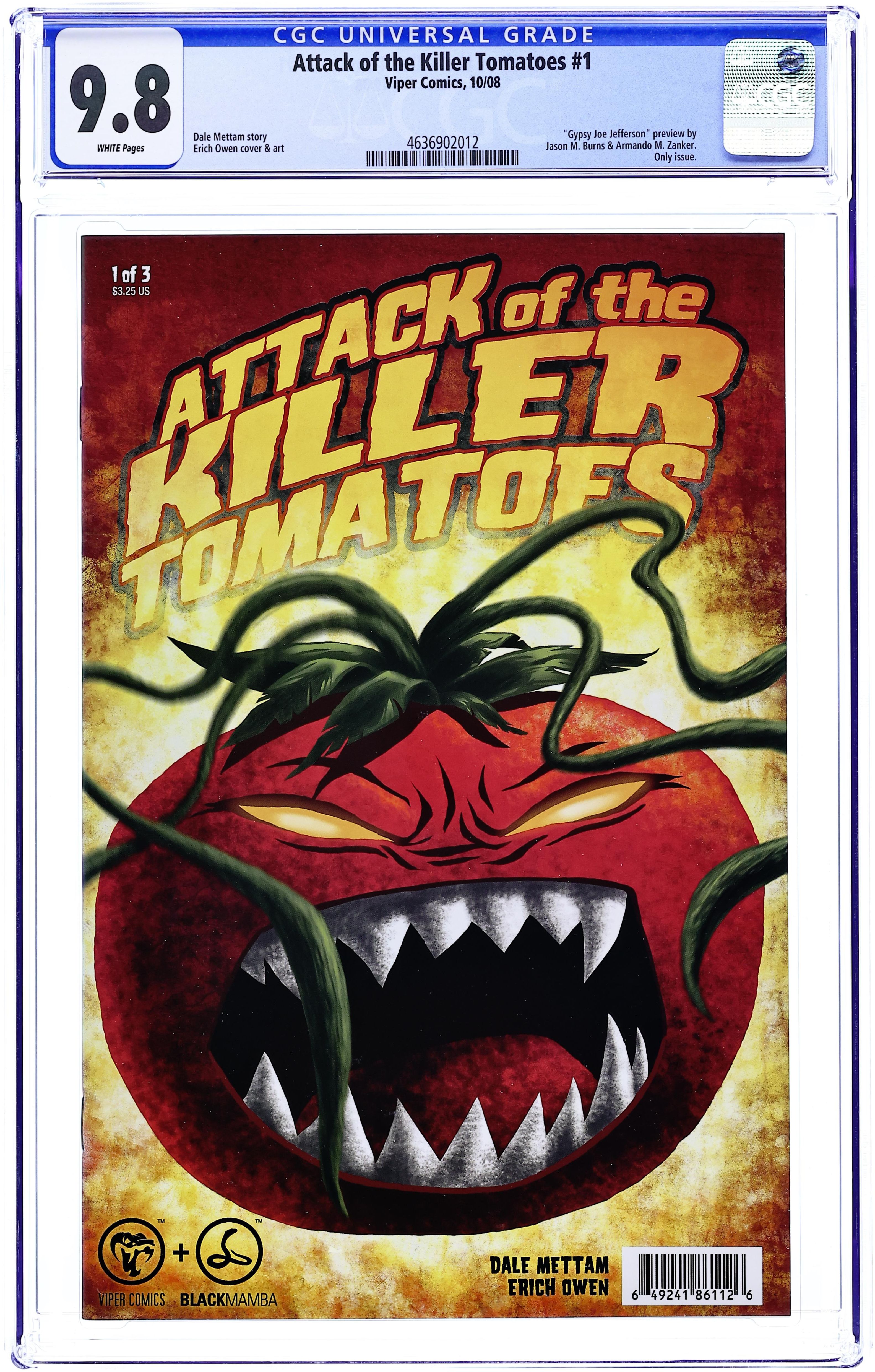 by Dale Mettam & Erich Owen Not since the super-secret invasion of Canada has military operative Mason Dixon faced such a grave challenge! They're red. They're high in lycopene. They are most certainly lethal - and they are already among us! Dixon and his team of highly trained specialists are all that stand between humanity and The Attack of the Killer Tomatoes! Cover price $3.25.