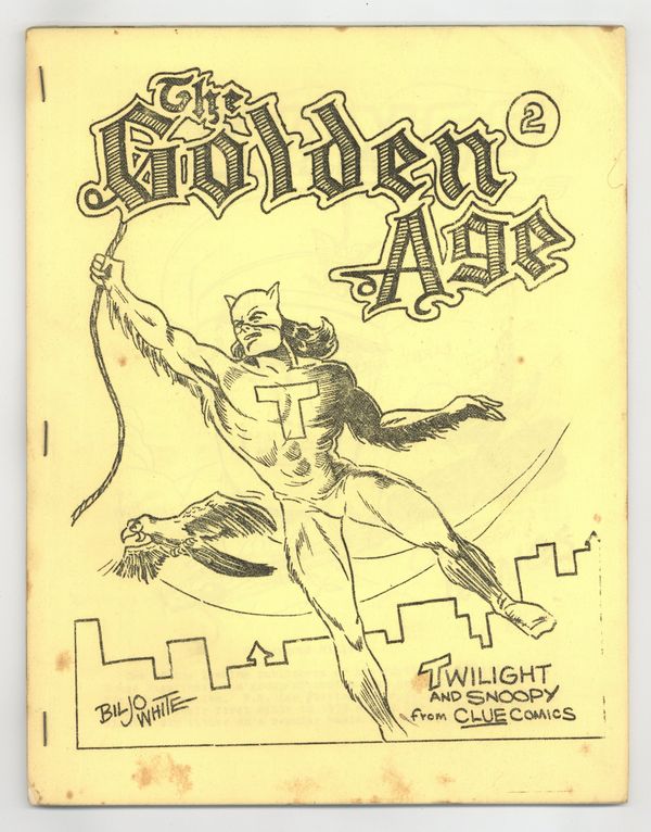 $18.001966 - Published by the S.F.C.A., The Golden Age was an important fanzine published during the height of comic book fandom. Features Twilight and Snoopy cover (from Clue Comics) by Biljo White. Issue #2 includes: a feature on Wings Comics by Raymond Miller; a report on the 1965 New York Comicon by Tom Fagan; a Hulk pin-up by Jim Jones; "Thoughts of Youth" historical piece by Fagan; a Captain Freedom pin-up by Ronn Foss; The Four Comrades in Startling Comics pinup; Bucky and Toro pin-up by Biljo White; Daredevil and the Little Wise Guys pin-up by Foss; Recollections of a Comic Book Collector by Gene E. Krey; and a feature on Clue Comics by Raymond Miller. BilJo White cover. 8.5 x 11 in.; black and white; 42 pgs. Cover price $0.75.