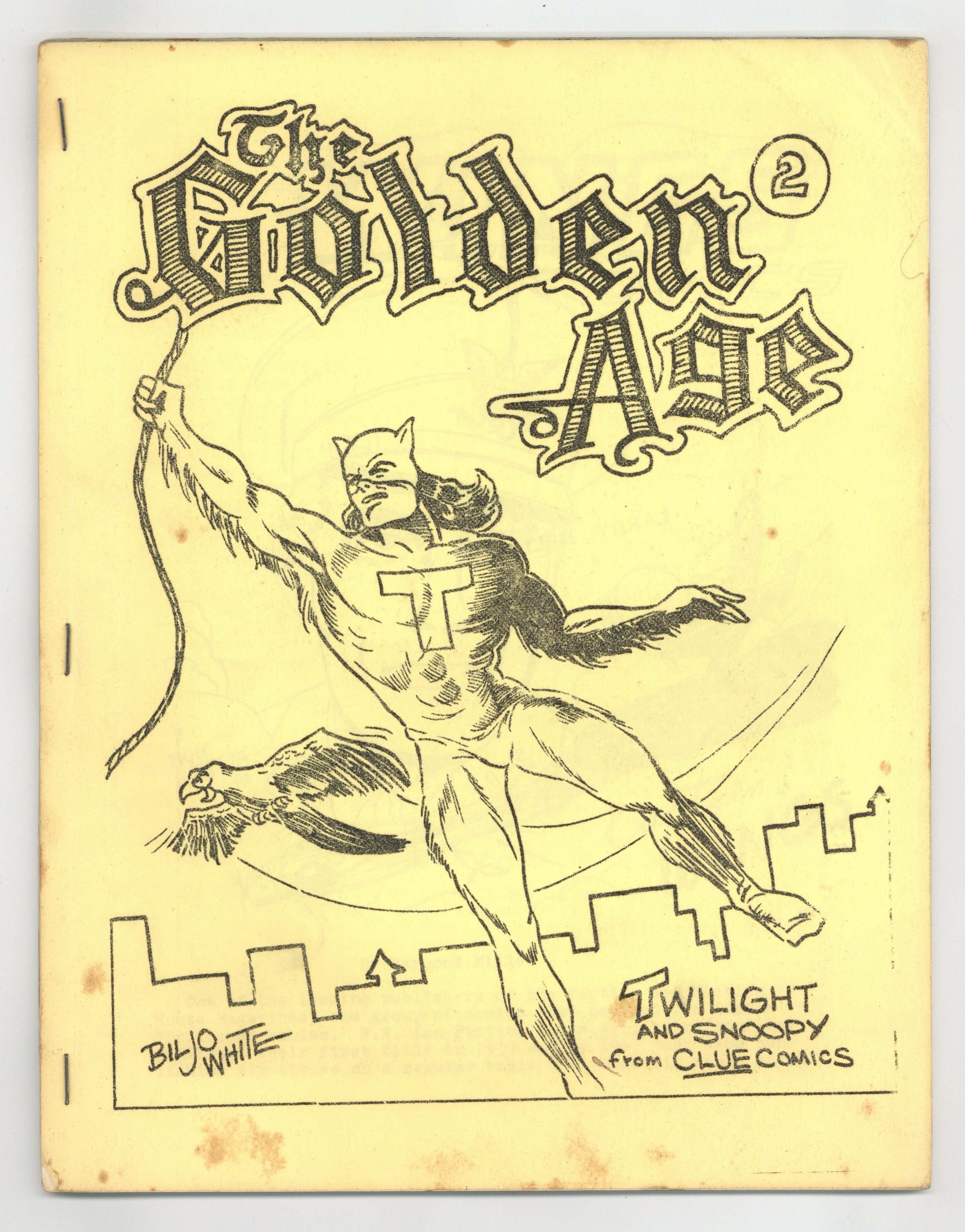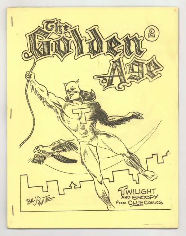 $8.001966 - Published by the S.F.C.A., The Golden Age was an important fanzine published during the height of comic book fandom. Features Twilight and Snoopy cover (from Clue Comics) by Biljo White. Issue #2 includes: a feature on Wings Comics by Raymond Miller; a report on the 1965 New York Comicon by Tom Fagan; a Hulk pin-up by Jim Jones; "Thoughts of Youth" historical piece by Fagan; a Captain Freedom pin-up by Ronn Foss; The Four Comrades in Startling Comics pinup; Bucky and Toro pin-up by Biljo White; Daredevil and the Little Wise Guys pin-up by Foss; Recollections of a Comic Book Collector by Gene E. Krey; and a feature on Clue Comics by Raymond Miller. BilJo White cover. 8.5 x 11 in.; black and white; 42 pgs. Cover price $0.75.