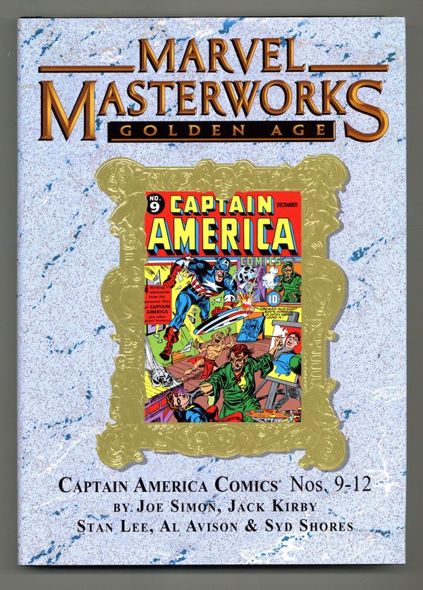 Volume 111 - 1st printing. "GOLDEN AGE CAPTAIN AMERICA" Collects Captain America Comics (1941-1954 Golden Age) #9-12. Written by JOE SIMON, JACK KIRBY and STAN LEE. Art by JOE SIMON, JACK KIRBY, AL AVISON, SYD SHORES, MIKE SEKOWSKY, CHARLES NICHOLAS, JACK ALDERMAN, and CHAD GROTHKOPF. Cover by JOE SIMON and JACK KIRBY. Mighty Marvel is bringing you another quartet of 64-page action-adventure greats featuring the one-and-only Captain America! From the personal files of Captain America comes comic-book adventure as only found in the bombastic Golden Age! Cap and Bucky battle the Black Talon, race through a spy ambush, sort out a mountain man feud, shrink down to fight pygmies, and venture to the wind-swept moors on the trail of the Hound of Cardiff Manor in the stories that put Captain America in the minds and into the back pockets of millions of Americans. Supported by the wartime tales of foreign correspondent "Headline" Hunter, the heroic Hurricane and Father Time, and Stan Lee's cartoon serial the Imp, these stories are pure Golden Age excitement from cover to cover! Hardcover, 280 pages, full color. Cover price $59.99.