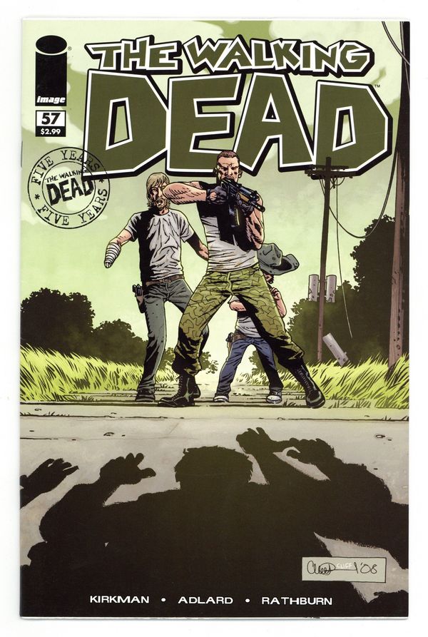 $17.00story ROBERT KIRKMAN art & cover CHARLIE ADLARD & CLIFF RATHBURN FIVE YEARS OF THE WALKING DEAD! From its humble beginnings five years ago The Walking Dead has grown into an undisputable cult hit. In this special anniversary issue the characters we've grown to love look back on how this world has affected them, what they've gained and what they've lost... and a look ahead at where they go from here. Cover price $2.99.