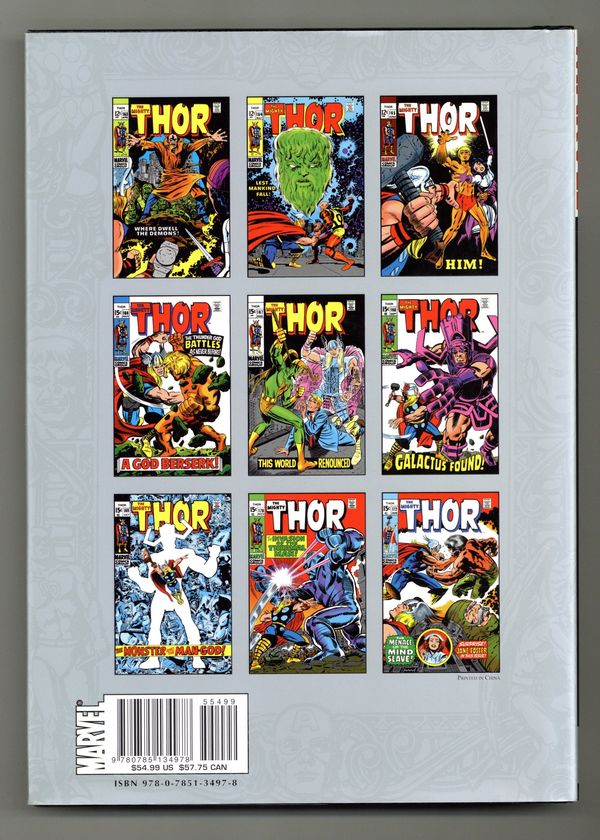 It's time to take another trip up the Rainbow Bridge to fair Asgard with the greatest team comics has ever known, Stan "The Man" and Jack "King" Kirby! Their Thor epics are the peak of cosmic action and mythic adventure, and these ten adventures will show you yet again just why. It all begins as the Mighty Thor takes a journey across time into an apocalyptic atomic future where man is now mutate, but there's no rest upon his return because then it's the god vs. god when Thor does battles with Pluto, Lord of the Underworld! And battles aren't the only thing you can bet on. Queen Karnilla pines for the noble Balder the Brave, while the amazing being known as "Him" (and known to Marvelites as Adam Warlock) takes the Lady Sif to be his perfect mate! Methinks that date may end in fisticuffs. Then it's a battle through Loki to find, and learn the amazing origin of, the one-and-only Galactus! It's a cosmic revelation as can only be brought to you by the King of Comics! But that ain't all! There's a knuckle-smashing showdown with the Thermal Man, the return of the Wrecker and a heart-wrenching astral adventure featuring Thor's former ladylove, Jane Foster.