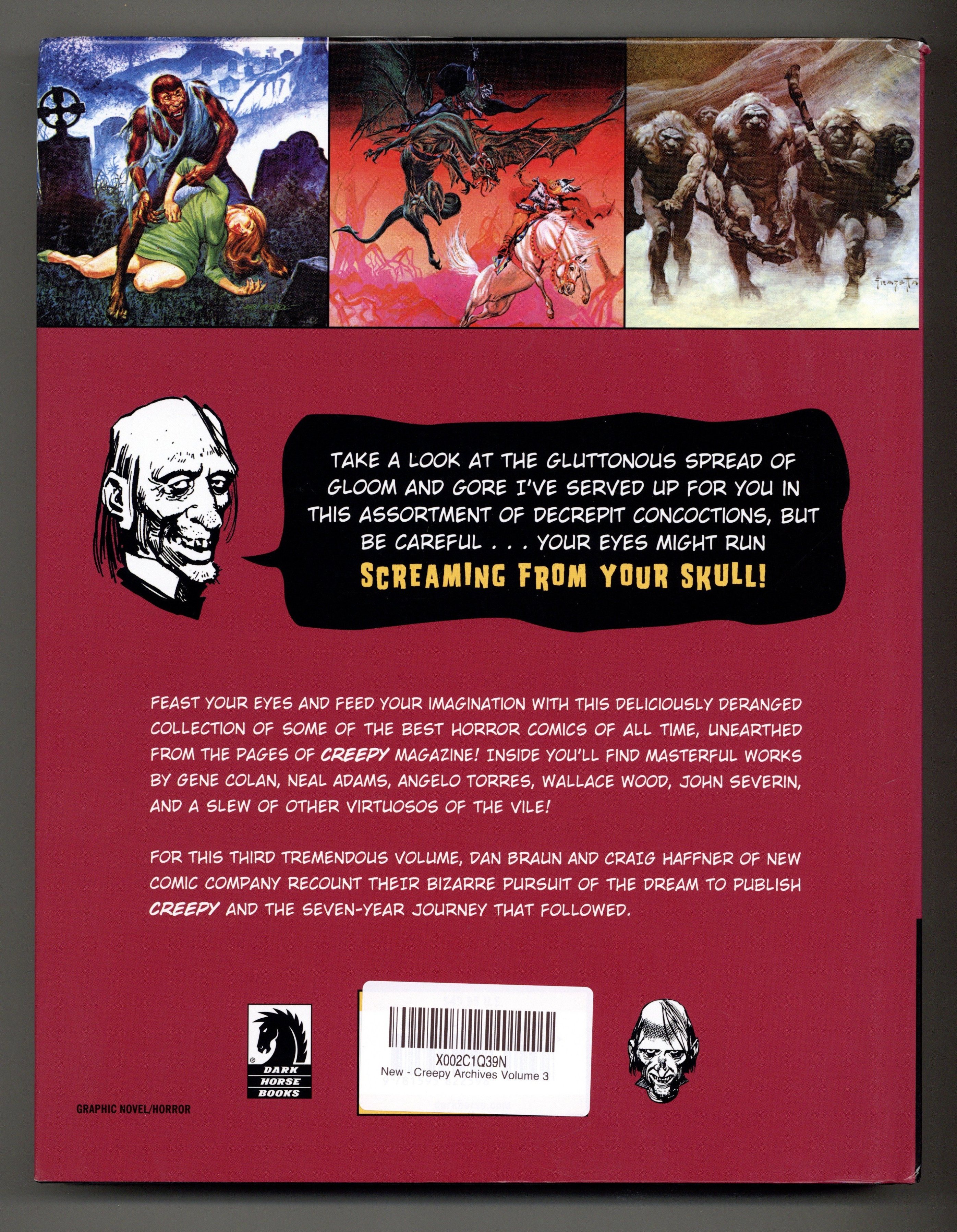 Fans of horror comics and jaw-dropping artwork, rejoice! Dark Horse Comics continues to showcase its dedication to bringing you the highest-quality horror comics ever made with this third blood-curdling collection of Warren Publishing's groundbreaking horror magazine Creepy. This landmark archive series brings readers, for the first time ever, each and every eerie story from Creepy magazine's original run, featuring work from many of the best artists ever to work in the medium of comics. Frank Frazetta, Gray Morrow, Alex Toth, Joe Orlando, and Angelo Torres are just a sampling of the artists whose work bring horror to life in startling and gorgeously gruesome detail in this third huge collected volume. Features art by Frank Frazetta, Gray Morrow, Alex Toth, Joe Orlando, Angelo Torres, and others!